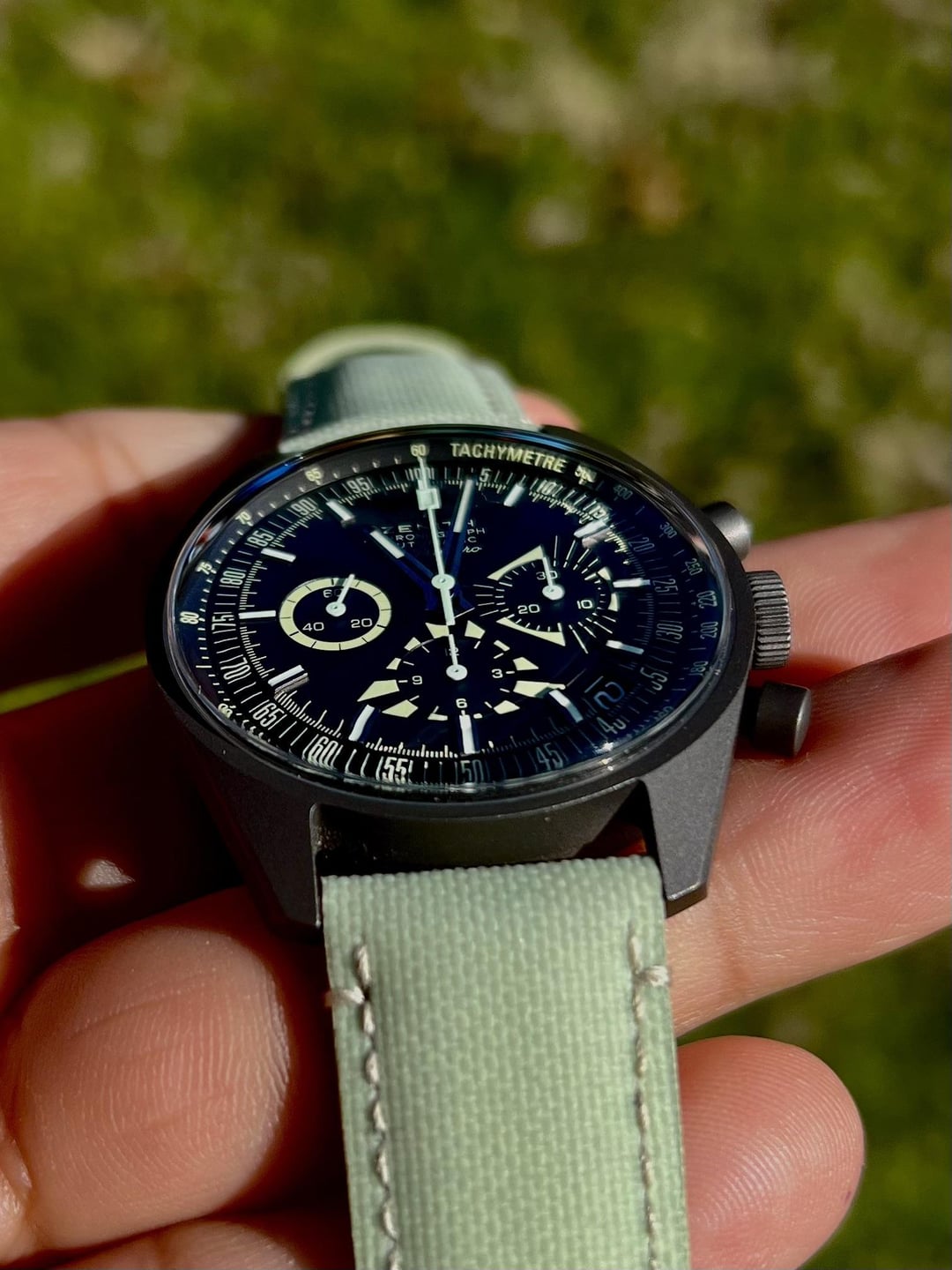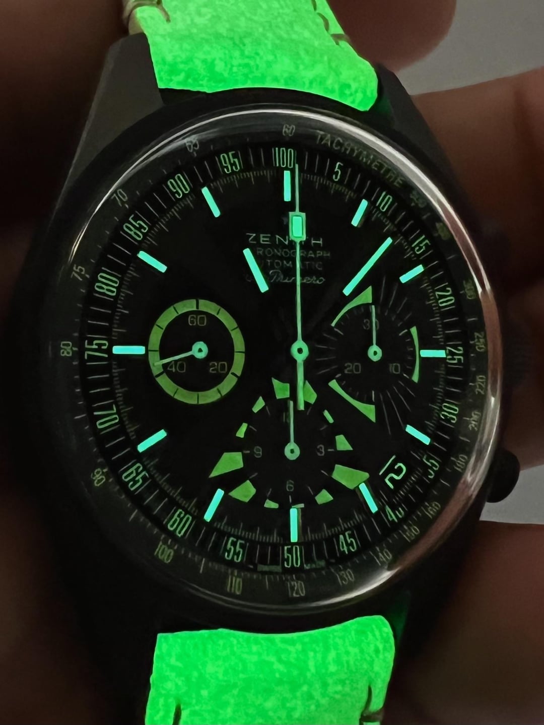 Hello, up for sale is a very special piece of mine, cared for very well for the past year of ownership. I loved it, enjoyed it, and it saddens me to let it go but I am in need of extra funds so I am selling today with complete set. Warranty card is dated 01/2022 and covered through 2027. What’s very interesting about this kit, when I purchased from my dealer ( I bought this watch used MINT) he included this card for complimentary service when warranty is ineffective, about the time this watch will need a service. Not completely sure how it works, I’d assume you’d reach out to the AD on the card and go from there, but it’s a nice little savings on future maintenance. Condition is an outstanding 9/10, there are no visible marks, no scratches or dings on the beautiful micro blasted titanium case. Original strap was not worn for the entirety of ownership besides when i tried the watch on, so it’s in really great shape, but there is a tiny flaw on one end of the strap. There is a small hole which can be seen in the album so the price reflects this flaw. I’ve worn this watch on this beautiful green NATO strap which I believe suits it best, I will include this with the kit. It also looks great on other straps which can be seen in the album, but will only be including the NATO. Technical Features: 38mm case 5ATM Water Resistance 50 Hr Power Reserve 36,000 VpH El Primero Movement Time Graph Data: -1 s/d, 261 amp, 0.0 beat error Link: https://imgur.com/a/AX646Zi Overall this a very unique, very limited and great running watch, I will most likely regret selling in the long run, so hopefully I can come back to it someday. Asking price is $$5,999 net to me. Not taking trades on this one, but feel free to reach out if you have any questions, thanks for looking!