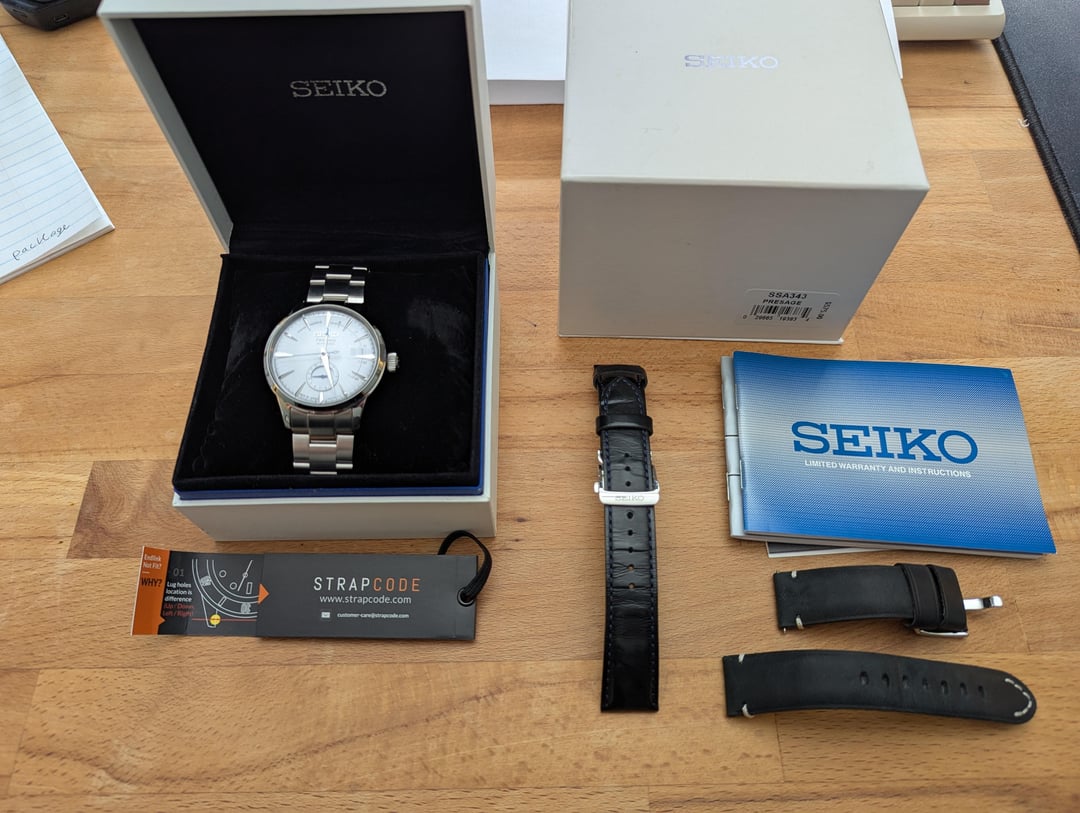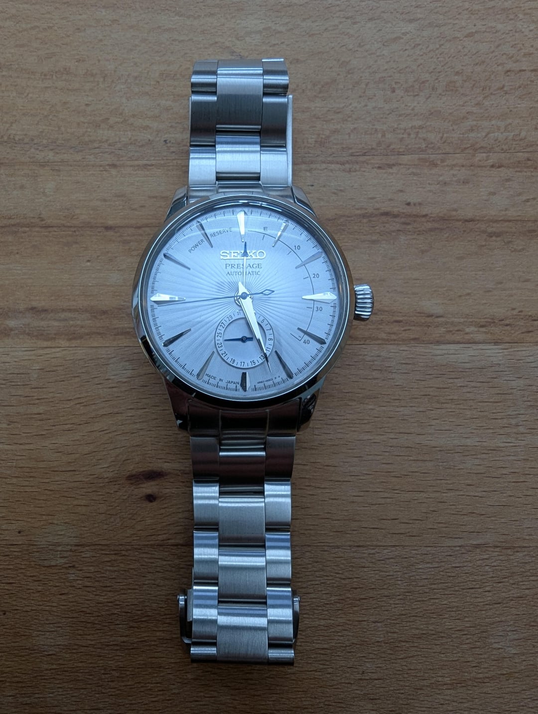 Hello [r/watchexchange](https://www.reddit.com/r/watchexchange/) I am selling my Seiko Cocktail Time ref SSA343. Case and crystal is in really good condition with no serious scratches. This watch has been worn so you can expect some light scratches. Keeps good time and the power reserve works well. It is still in good working order and will come with the bracelet pictured from Strapcode, the original strap and another black patent leather strap that came with the watch when I bought it here. Asking $400 plus shipping. Paypal FF. Let me know if you have any questions