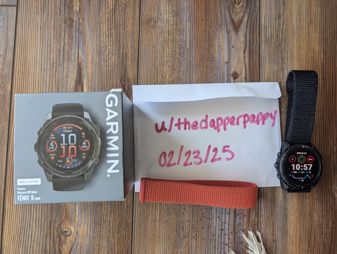 Selling my barely three months old Fenix 8 51mm watch. I used it daily for about two months, but have recently lost my job of eleven years, and could use the money. Watch is in excellent condition. No dings, scrapes etc. Comes with a Garmin nylon band (red) and third party band as well. Amazing adventure watch, and fitness tracker. Asking $975 for it. Retails at $1199. CONUS only. Thanks for looking.