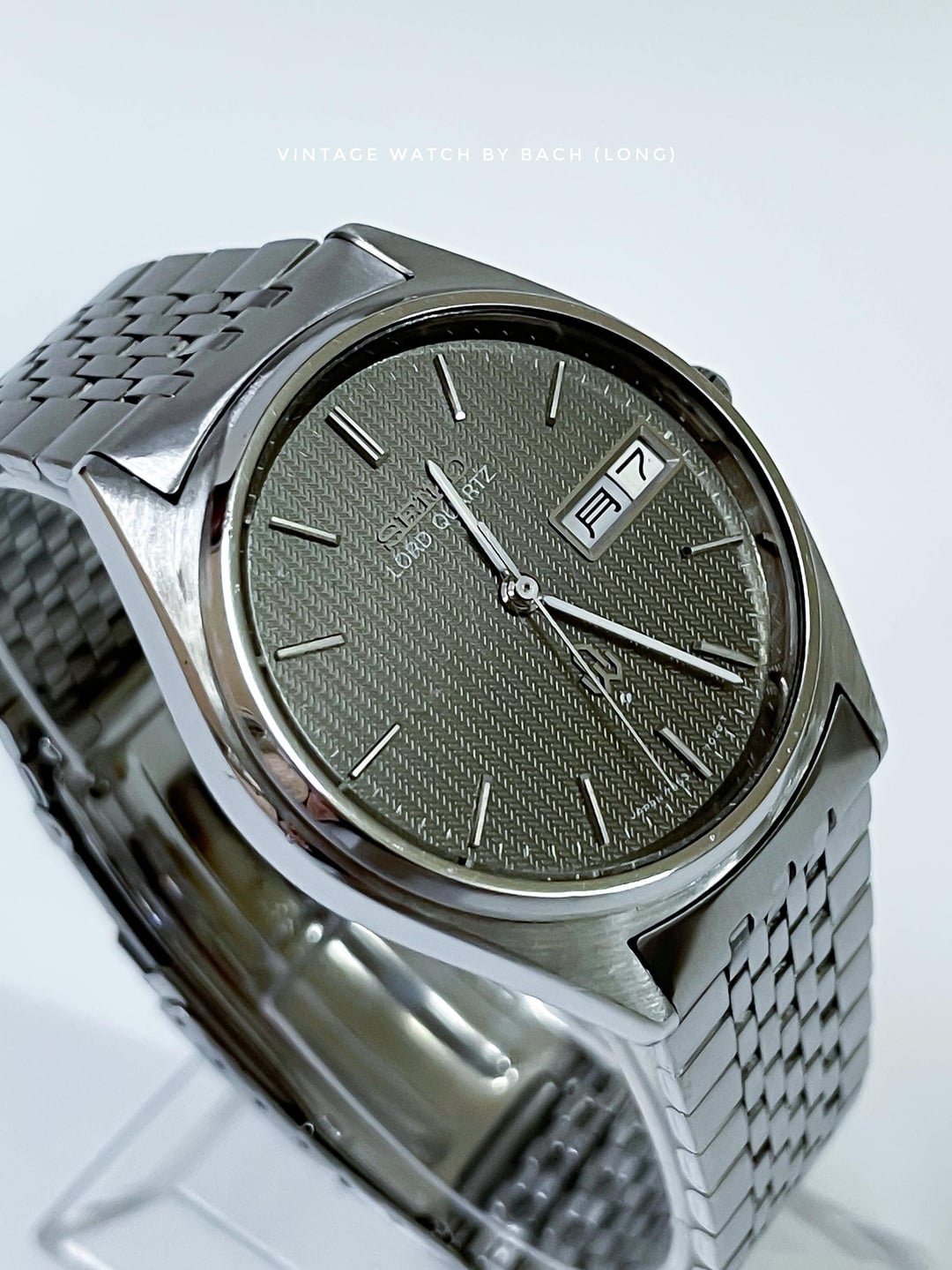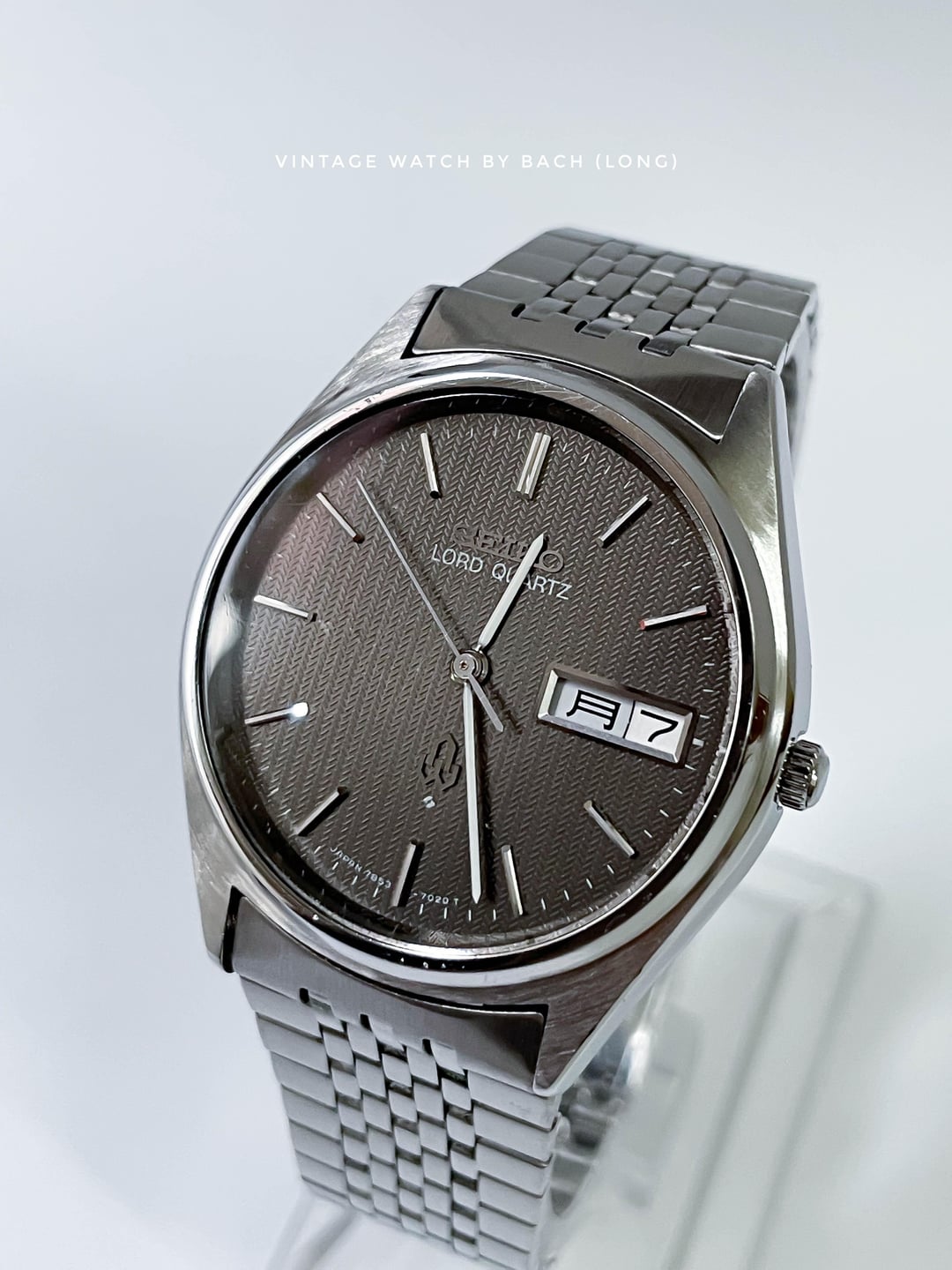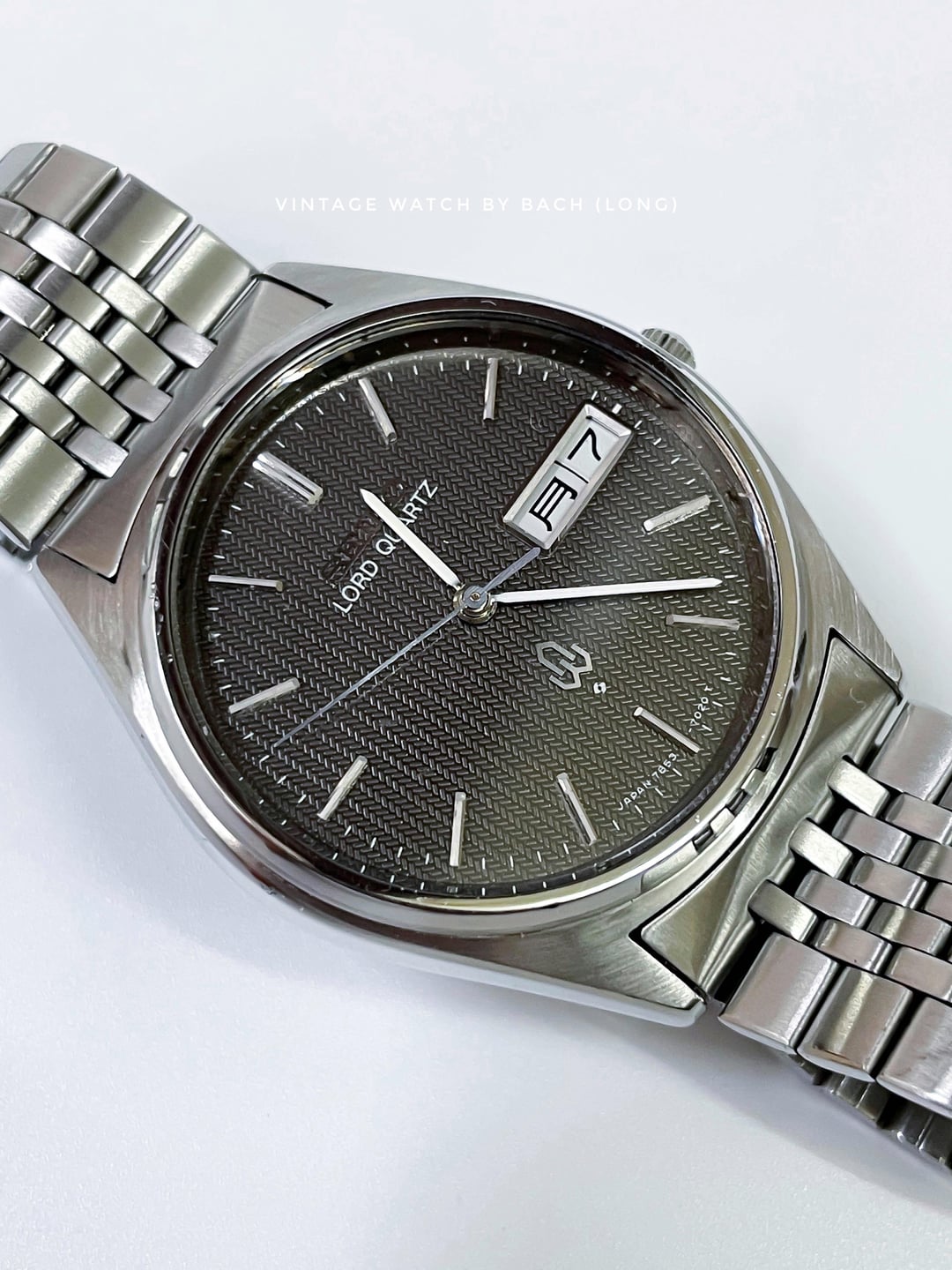 **Seiko Lord Quartz 7853-7020 Black Textured Dial** **SPECIFICATIONS:** \- Japanese Seiko Lord Quartz with excellent condition from September 1978. Classy and elegant style. \- Seiko Lord Quartz collection (see logo applied at the top of the dial) is one of the high-end models of the time, among King Quartz, Grand Quartz, etc. But unlike the Kings and Grands, these Lords are very rare. \- 7853 movement is high grade quartz caliber, with high precision +/- 10s per month. \- Original Seiko stainless steel bracelet, fit up to 20cm wrist. \- Stainless steel case, size 34mm (without crown), Lug to Lug: 39mm, Lug Width: 18mm, Thickness: 8mm. Suitable with all wrist size. \- Black textured dial, white stick hands with white stick hour markers provide nice contrast. Bold calendar box for Kanji/English day and date. **CONDITION:** The watch is very well preserved for its age (See Photos). No obvious sign of wear.. The original movement works well (keeping the time, changing the day and date). Serviced and replaced with new battery. Please note that only setting the date/day in 6-7 o’clock (safe time), must not change it in 9PM-4AM or that will damage the movement. Recommend to avoid getting wet for vintage watch. The watch has been tested for 1 month and operate stablely before selling **SHIPPING AND PAYMENT:** \- Worldwide shipping via UPS (cost me 60-80 USD) with tracking number. 6-8 business days. \- Price 230 USD (free shipping). PayPal F&F or G&S (+4.4% transaction fee paid by buyer) \- Import duties and taxes are not included in the item price. These charges are the buyer’s responsibility. Please check this prior to buying. These charges are normally collected by shipping company (UPS). For more beautiful watches, visit: Etsy store: [https://vintagewatchbybach.etsy.com](https://vintagewatchbybach.etsy.com) Chrono24: Please DM for product links. Ebay store: [https://www.ebay.com/usr/vintagewatch\_bybach](https://www.ebay.com/usr/vintagewatch_bybach) Instagram: [https://www.instagram.com/vintagewatch\_bybach](https://www.instagram.com/vintagewatch_bybach)