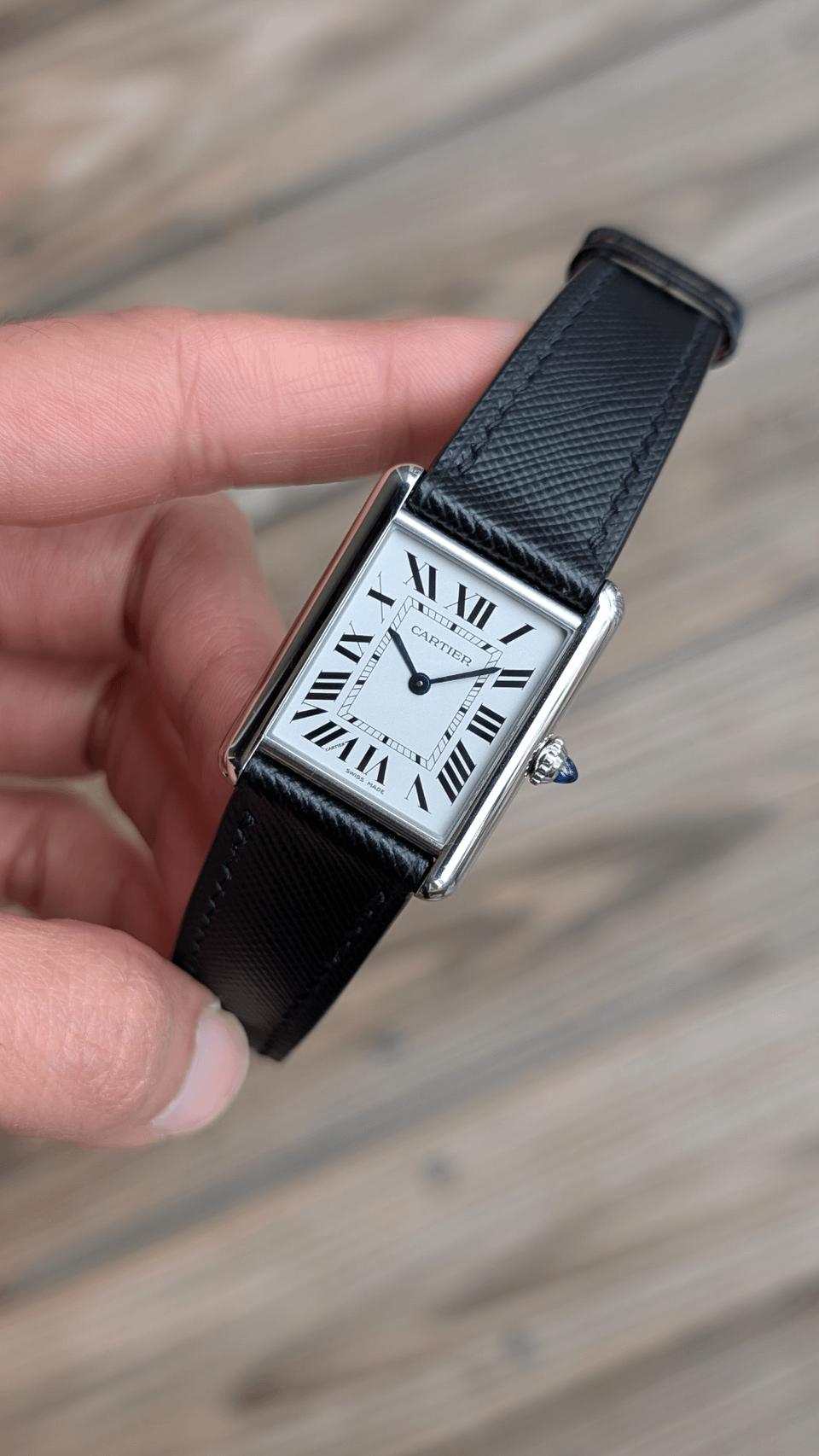 Hey All, I'm looking to sell my December 2024 Cartier Tank Must Solarbeat V2, Large. Reference: WSTA00120 This is the V2 or updated version of the iconic Tank solarbeat. This was a "silent" release by Cartier in November of last year. But this update fixes all issues faced by the V1 solar beats. The upgrades include: 1. A new microperforated dial that absorbs light from the whole surface instead of just the numerals 2. An improved movement that charges twice as fast and still lasts at least 16 years without a battery change 3. A switch back to the better calf leather strap compared to the vegan strap of the old solarbeat Here's a video highlighting the new version: https://youtu.be/PexWd8TJXkc?si=4aJTYmT1Evql5mMx This watch was bought late December 2024 and is under warranty until December 2032. ###Condition I've had this watch for just a few months, and is in excellent overall condition. The polished surfaces on the bezel and sides have some minor hairlines from normal use, nothing significant. The case back still has the sticker and is pretty much flawless. The original leather strap is completely unworn. ###Price $2999 shipped Slightly flexible on the price but not interested in trades. ###Payments accepted Zelle / Venmo / Wire transfer / Cash for local pickup (NOVA / DC area) Please feel free to reach out to me for any other information. I'm also happy to have a phone/video call if needed. I have almost 50 perfect transactions here so deal with confidence. ###Timestamp https://imgur.com/a/jwy8Whw