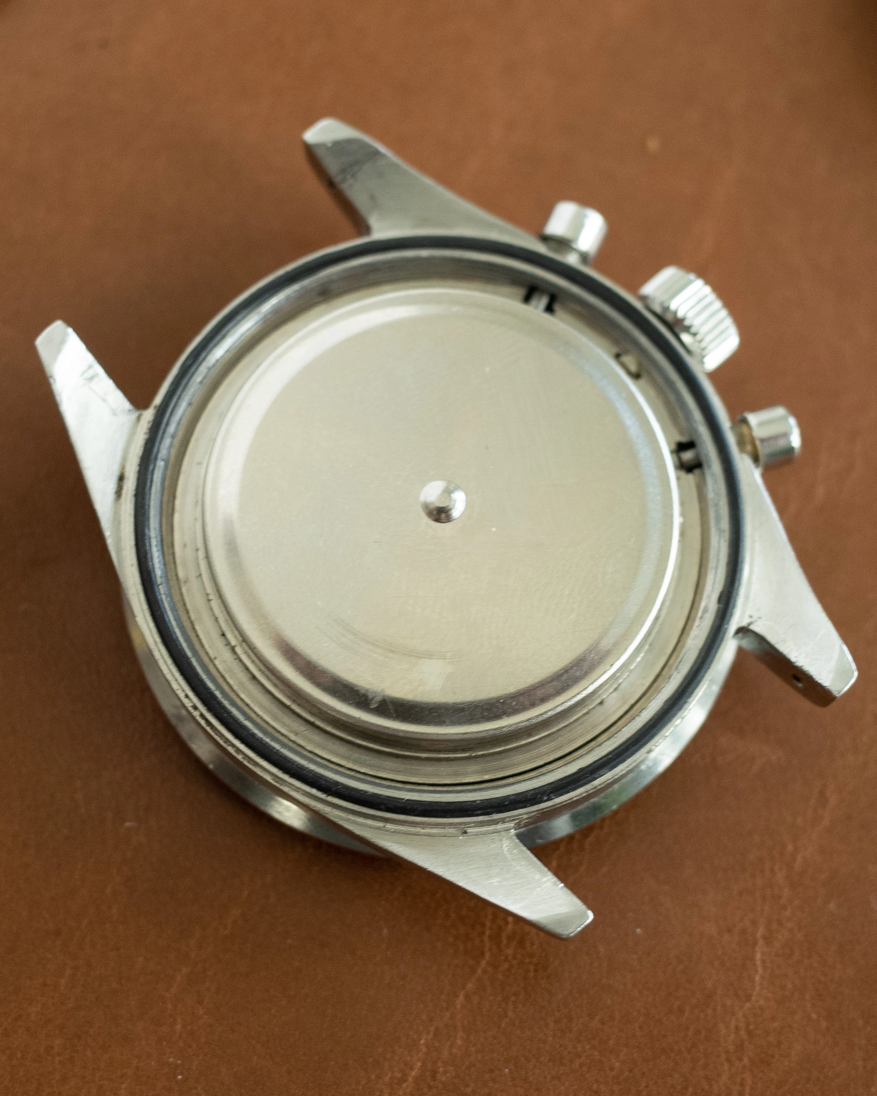 Dial: Correct dial has been relumed in the past, presumably during a service in the 60s, since the tritium no longer reacts. I think it actually looks very nice and has a pleasant tone. Original alpha hands and correct drop chrono hand have been relumed in the past.