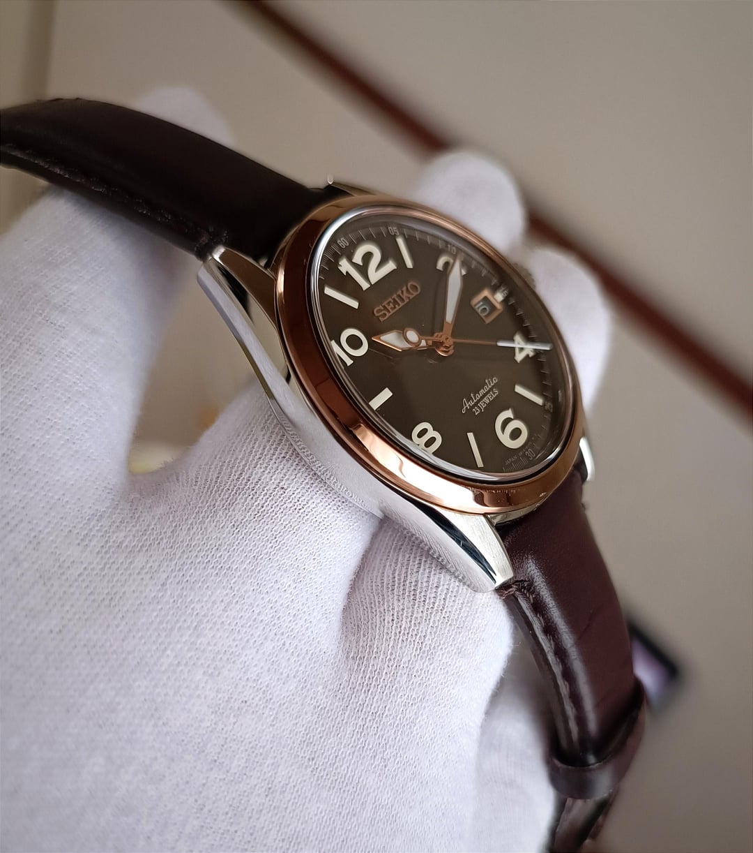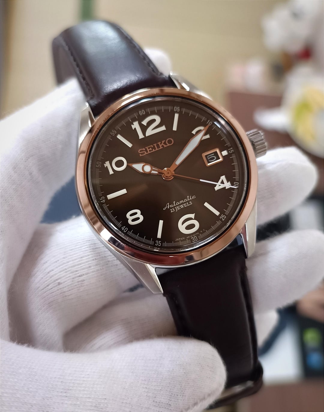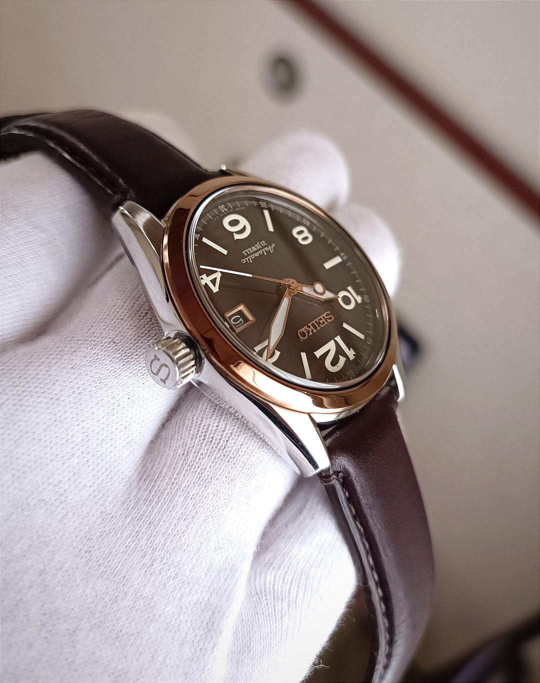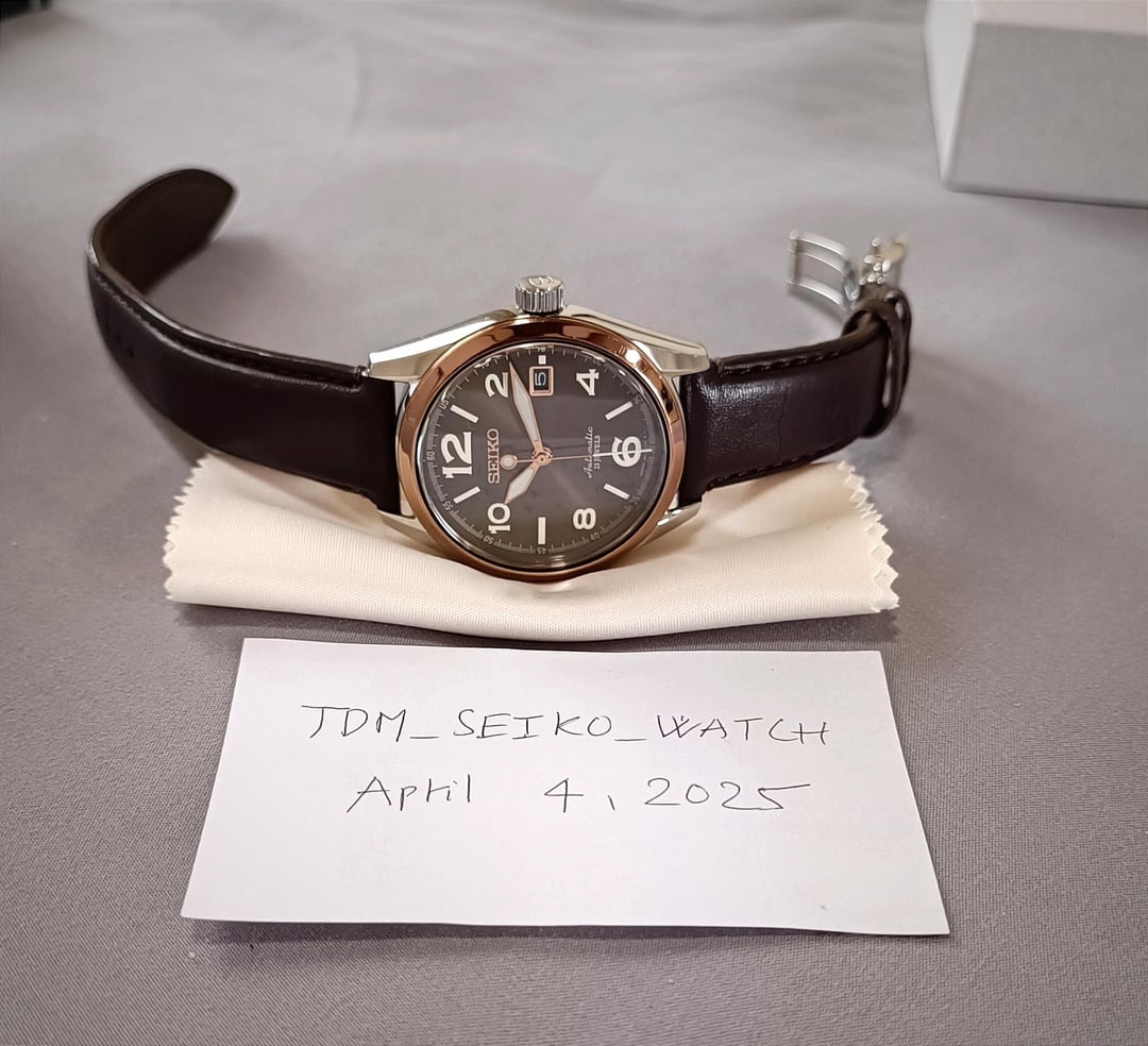 Hello r/watchexchange, I’m offering for sale the JDM Seiko Mechanical SARG012 with a coffee brown dial, rose gold-tone hands, and bezel. First released in 2014, this model is now extremely rare. Condition: Pre-owned, 100% original, never serviced or repaired. The watch is still in very good condition, with only a few minor scratches from use. Case size: 40mm Lug width: 20mm Movement: Seiko 6R15, 21,600 vph, running smoothly. Dial, hands, and indices: All are in excellent condition with beautiful light reflection. This model is special because both the hands and indices have lume, making it easy to read in the dark. Crystal: Sapphire, perfect condition with no scratches. Strap: Original Seiko leather strap in great condition, comes with a butterfly clasp to prevent creasing. This is a rare timepiece that has been gently worn and remains in excellent condition with only minor signs of wear. A great choice for collectors! Included: Everything shown in the pictures. Images: https://imgur.com/a/l0bIgBM Timestamp: https://imgur.com/a/t2AdXNw Pricing, Payment, and Shipping: Price: $640 (shipping not included). No trades. Payment: PayPal F&F or G&S (+4.6% fee). Shipping: FedEx Express ($50–$80 worldwide, delivery in 3–4 days). Thank you for your interest!