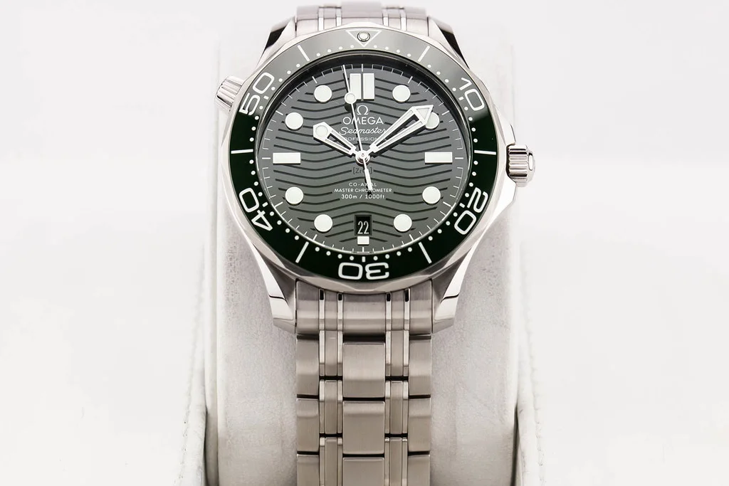 Up for sale is an excellent condition Omega Seamaster 300 Green Wave Dial on Bracelet, reference # 210.30.42.20.10.001. It comes complete with all boxes, papers, booklets, hang tag and Omega Warranty Card dated July 2022.