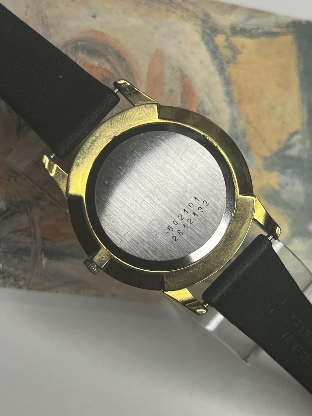 Hi, Im selling this ultrathin Universal Geneve Kanji dial vintage watch. The case is THIN, works perfectly as a dress watch or a funky standout piece to spice up an outfit or be a conversation starter. Watch is manual wind and works perfectly. The size is great, especially for someone like me with ~6.25 in wrists, measuring roughly 31mm across, it’s not too bulky and due to the thin nature of the watch, can fit perfectly beneath the cuff. I threw on an aftermarket strap I had laying around, it’s too small for this watch. For an extra $10 I can put a new basic strap on but I’d advise you just get a new one off eBay or something to better get the most for your money. Please reach out if you want to see this or any other watch over FaceTime. See all pictures for details and timestamp. Feel free to message, comment, or PM me any questions you may have. Shipping is included in the United States. I accept most forms of major payment. For more vintage watches and first dibs on affordable pieces follow my Instagram at: Ar.ro.ws