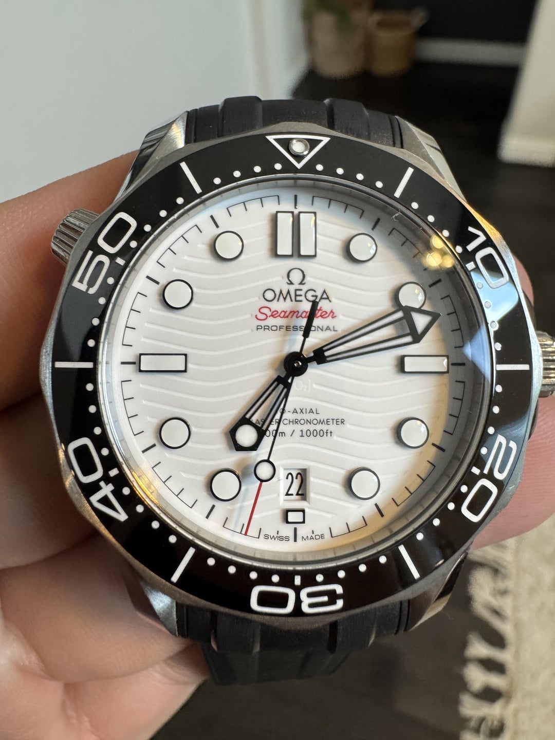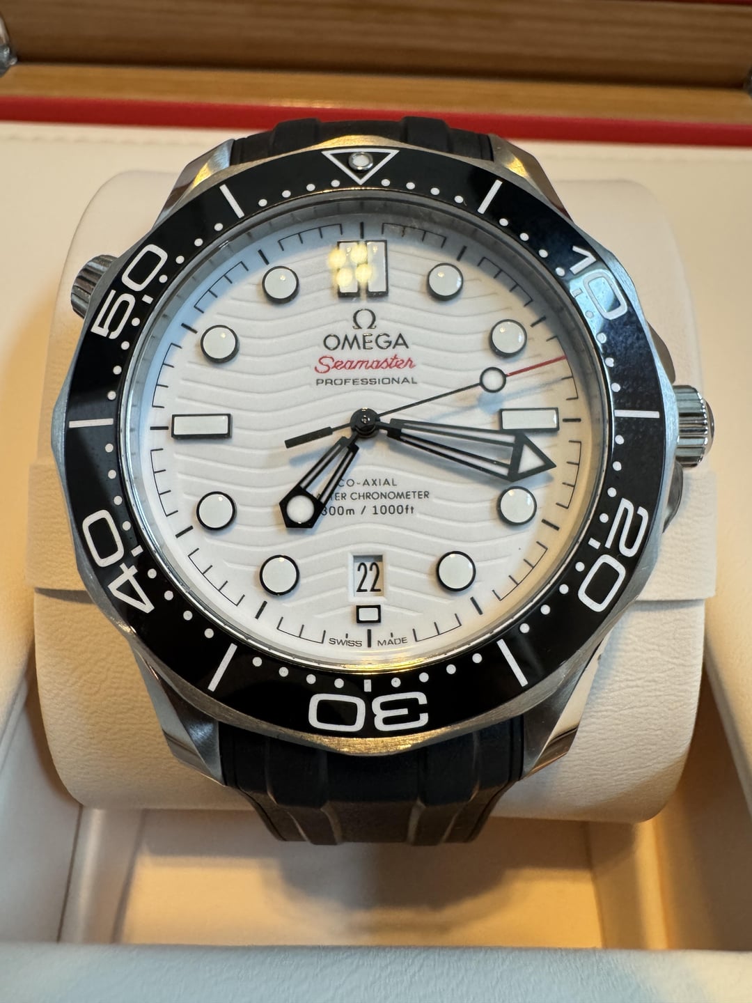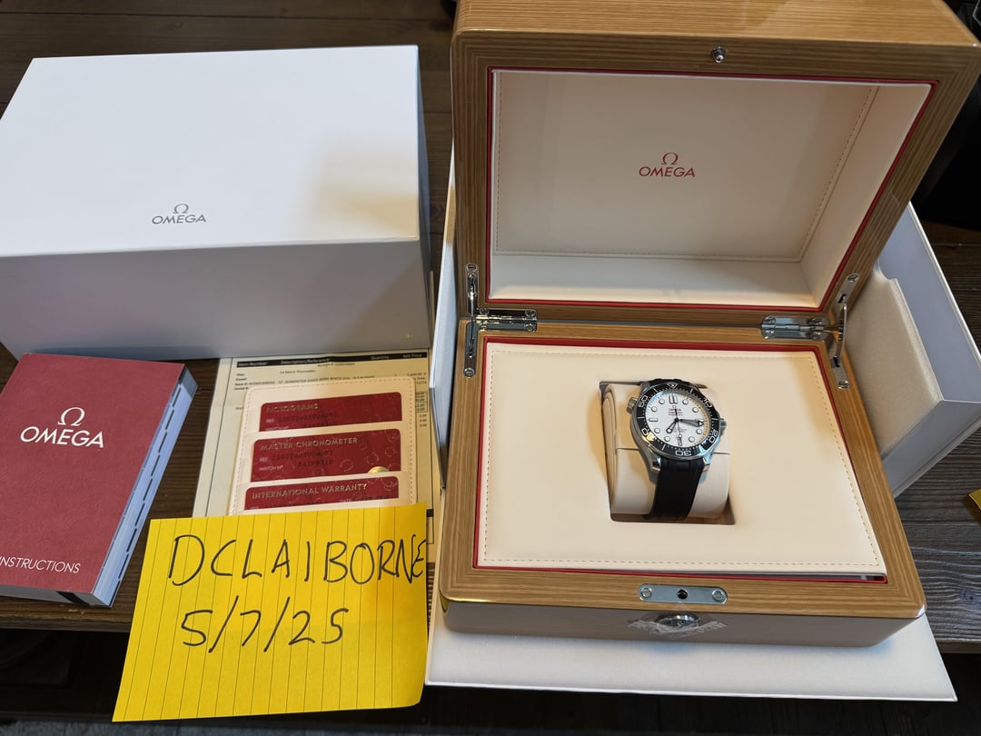 Happy May Redditors… Have to move some pieces to help cover cost of my dad’s surgery so up first is my 2024 Omega SeaMaster 300M Diver. Asking $4600 + shipping Zelle, Venmo, PayPal preferred Brand Omega Model Seamaster Diver 300 M Reference number 210.32.42.20.04.001 Movement Automatic Case material Steel Bracelet material Rubber Year of production 2024 Condition Like new & unworn
