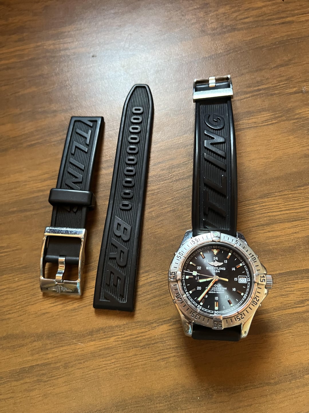 Selling my Breitling Colt Ocean 38mm for $1350 shipped. Condition is used with normal wear, no huge marks or dings. The strap is missing the securing loop, so l'm adding another complete strap w/ buckle that's almost new. Happy to answer any questions and provide additional videos/images.
