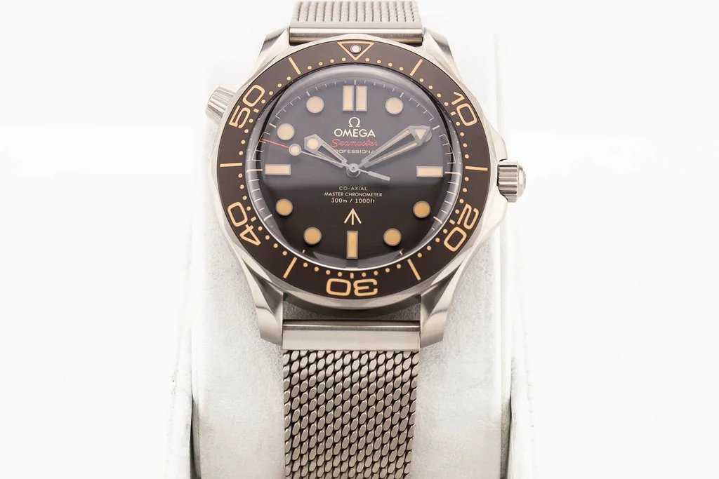 Up for sale is an unworn condition Omega Seamaster 300 James Bond No Time To Die (NTTD) reference # 210.90.42.20.01.001. It comes with all boxes, papers, booklets, leather pouch, OEM Nato Strap, and Omega Warranty Card dated May 2025.
