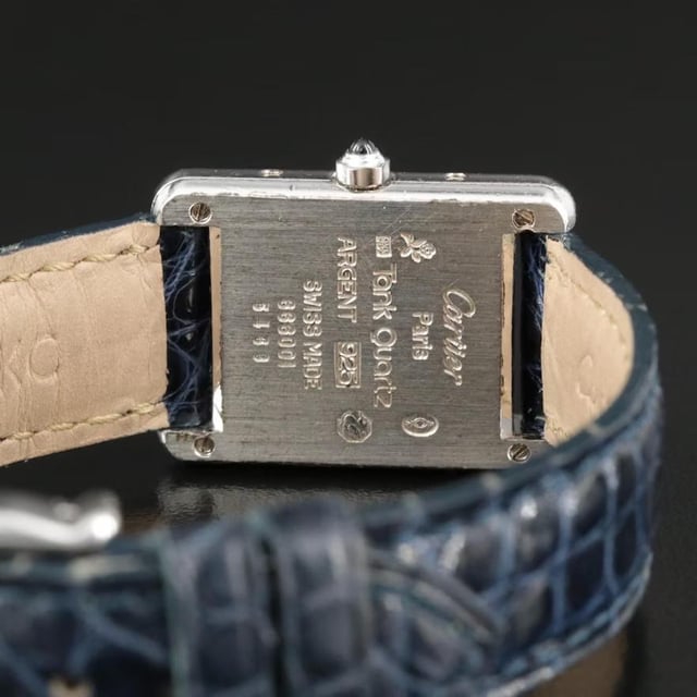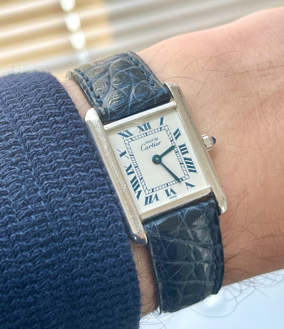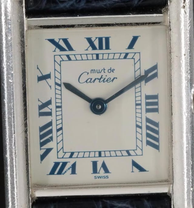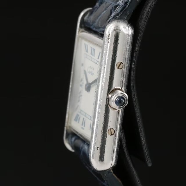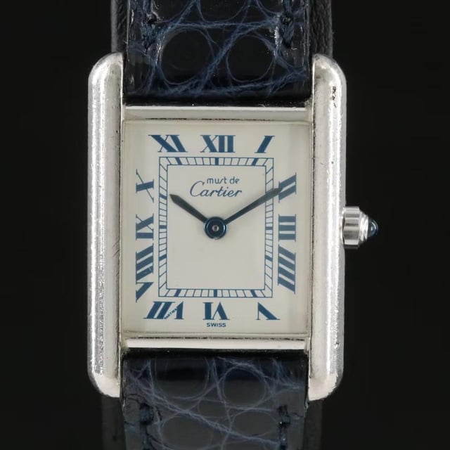 Up for sale is a vintage Cartier Must de Cartier Tank Ref. 666001, dating to around 1988. This timeless classic features a sterling silver case, Cartier’s signature blue cabochon crown, and a crisp rectangular profile that’s instantly recognizable. A beautifully aged piece with tons of vintage charm. The watch is running on a quartz movement and keeps very accurate time. The dial features the discreet Cartier signature inside the “7”, an authenticity detail found in genuine models. It comes on the original Cartier blue leather strap with a signed Cartier ardillon buckle, and also includes the original Cartier service pouch and original booklets. As expected for a piece of this age, there’s visible wear throughout the case and crystal, including scratches, nicks, and worn edges. The watched can be polished back to new condition at any Cartier boutique location. It wears beautifully and has loads of vintage character. Only selling to fund a large camera purchase! **Details:** * **Brand/Model:** Cartier Must de Cartier Tank * **Reference:** 666001 * **Year:** Circa 1988 * **Case:** Sterling Silver – 20mm wide, 15mm lug width * **Crystal:** Scratched * **Movement:** Quartz – **running very accurately** * **Dial:** Classic Tank dial with **Cartier signature inside the 7** * **Crown:** Blue cabochon * **Strap:** **Original Cartier blue leather strap** with **signed Cartier buckle** * **Includes:** **Cartier booklets** and **Cartier service pouch** (no box) **Price:** **~~$1,995~~** **~~$1795~~** **~~$1595~~** **~~$1400~~** **$1300 OBO – Priced to sell quick** (Shipped & insured within the U.S.) **Payment:** PayPal F&F preferred or G&S with references (+4%)