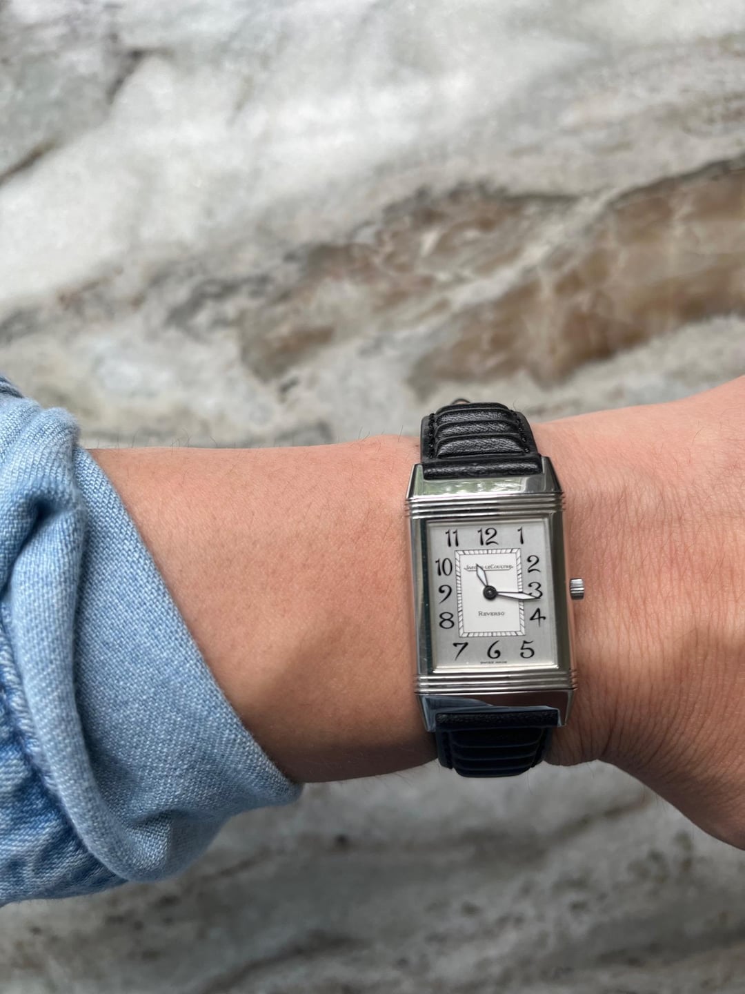 Hi Watch Fam, I am selling a watch that I recently picked up. It is a relatively rare Jaeger LeCoultre Reverso Classique (Ref. 250.8.86) with a floral arabic numeral dial in a manual wind configuration. This combination is relatively rare. Given that this is the Classique size, this is quintessential Reverso coming in at 23mmx38mm (17mm lug width). The watch has a lot of presence for its size. Pictures of it on my 6.75” wrist are included for your reference. Minor wear marks (no notable scratches) and in overall great cosmetic condition. Reversed side is clean with no engraving so ready for your own customization. Watch keeps time well, winds smoothly with excellent tactile feel and comes with the OEM JLC clasp and a like new after market brown ostrich strap. The other straps included in the pictures (black Autodromo strap, grey ostrich strap) can be included for extra. **Looking for $3,800.** Shipping will be on me if buyer is in continental U.S. Please do not hesitate to reach out with any questions or for further pictures. Payment will only be accepted through wire, venmo or zelle. Exceptions will be made on a case by case basis. I will not accept any returns so feel free to ask any questions. I have years of transaction history including dozens of positive transactions feedback on WatchUSeek under Willing86 and a few dozens more here on Reddit, so deal in confidence. Feel free to ask any questions or request more pictures/details! Timestamp: [https://imgur.com/a/gIKwpeK](https://imgur.com/a/gIKwpeK) Pictures: [https://imgur.com/a/bFIv3Bd](https://imgur.com/a/bFIv3Bd)