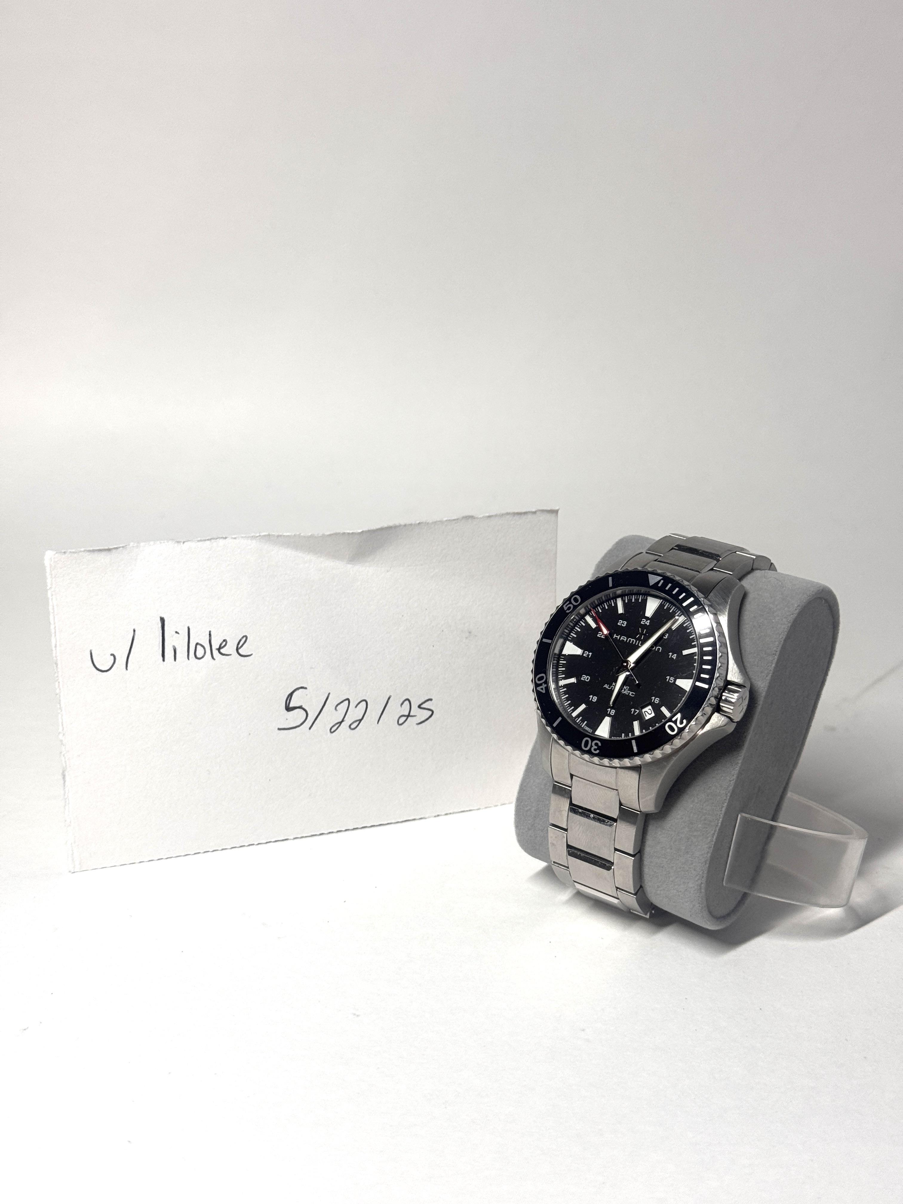 Up for sale is a Hamilton Khaki Navy Scuba Automatic. This 40mm diver blends everyday wearability with sporty edge—complete with box, extra links, and smooth bezel action. Slight wear on the bracelet, but overall in great shape and keeps time well. Details: • Case size: 40mm • Model: Hamilton Khaki Navy Scuba Auto • Condition: Great condition (slight wear on bracelet) • Includes: Box, Watch, Extra links • Price: $400 shipped CONUS • Payment: PayPal F&F, Venmo, Zelle [Instagram](https://instagram.com/walkwristed)