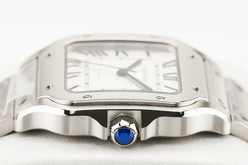 Up for sale is a brand new Cartier Santos De Cartier Medium Size, reference # WSSA0029. It comes complete with all boxes, papers, booklets, Smartlink straps & clasp, tools, hang tag, bezel guard, and Cartier Warranty Card dated May 2025.