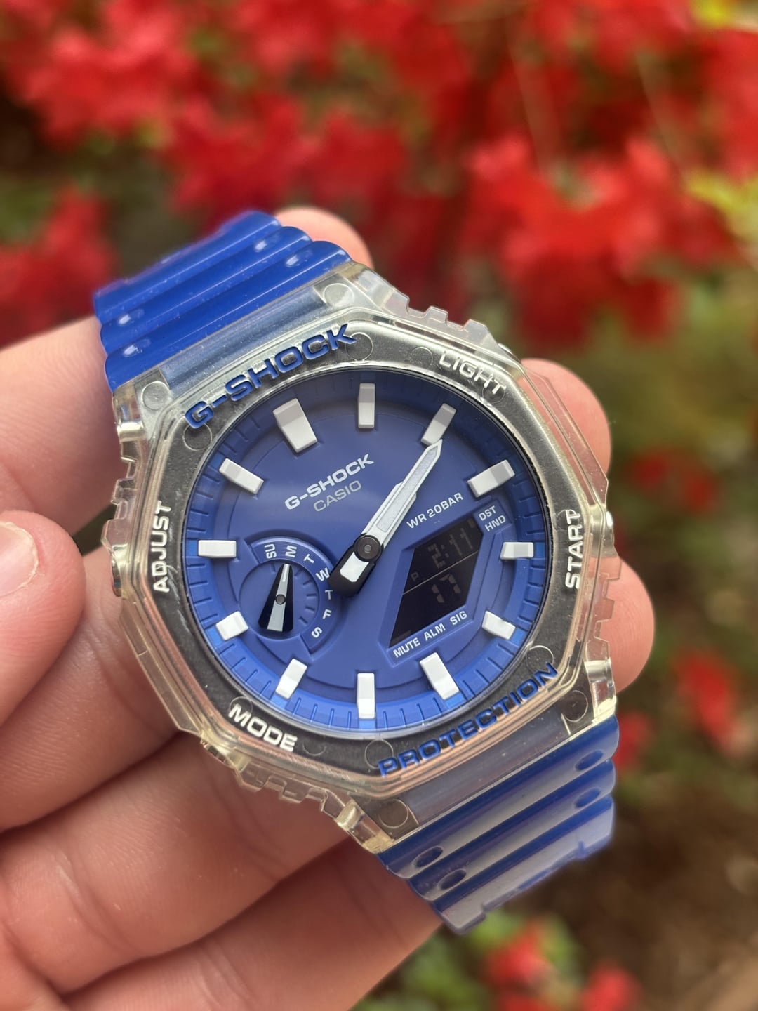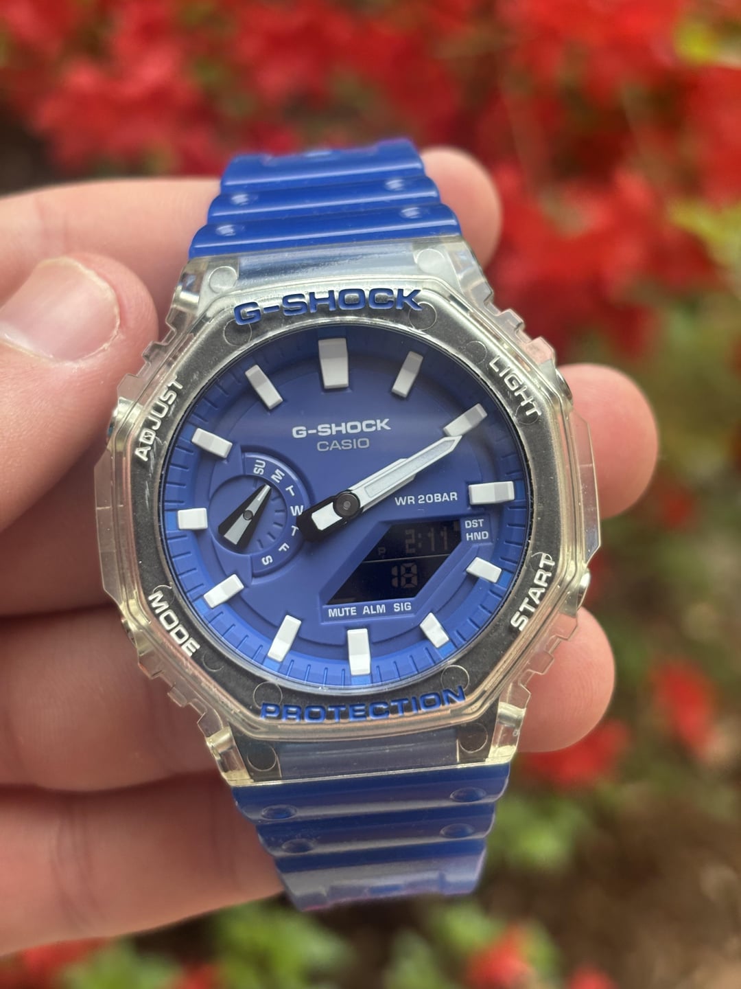 [WTS] Casio G-Shock GA-2100HC-2A “Hidden Coast” – $99 • Condition: Excellent; watch only • Details: The GA-2100HC-2A is part of G-Shock’s “Hidden Coast” series, featuring a translucent bezel and a vivid blue resin band. It combines analog and digital displays, housed in a slim 48.5mm Carbon Core Guard case. Key features include: • Shock resistance • 200-meter water resistance • Double LED illumination • World time (31 time zones) • 1/100-second stopwatch • Countdown timer • 5 daily alarms • 3-year battery life • Payment: PayPal FF, Wire, Venmo, Cashapp • Location: East Lansing, MI • Shipping: CONUS shipping included; international shipping available at buyer’s expense • Trades: Not accepted at this time • Financing available Let me know if you need further information or have any questions!