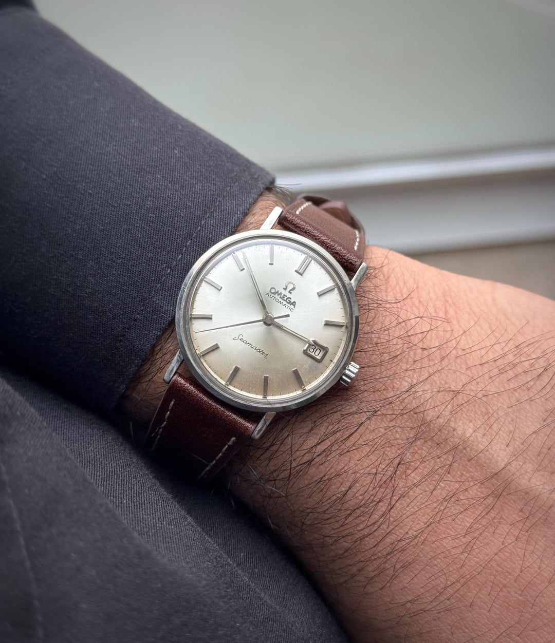 [WTS] Vintage Omega Seamaster 14770 - 61 (Serviced) only for 699$ Shipped 🚢 Via FedEx Up for sale is a omega seamaster reference 14770-61 featuring a stainless steel single piece case with a case size of 34mm. Condition of the case is good no major dents or dings just a few scratches overall. Dial is also in good condition with little signs of aging displaying a beautiful sunburst effect. Comes on a beautiful brown strap with a unique buckle. Automatic movement calibre 562 working perfectly fine with no malfunctions and keeping accurate time since its recently serviced. Watch only! Asking 699$ shipped via Fedex Payment through Wise or PayPal F&F only