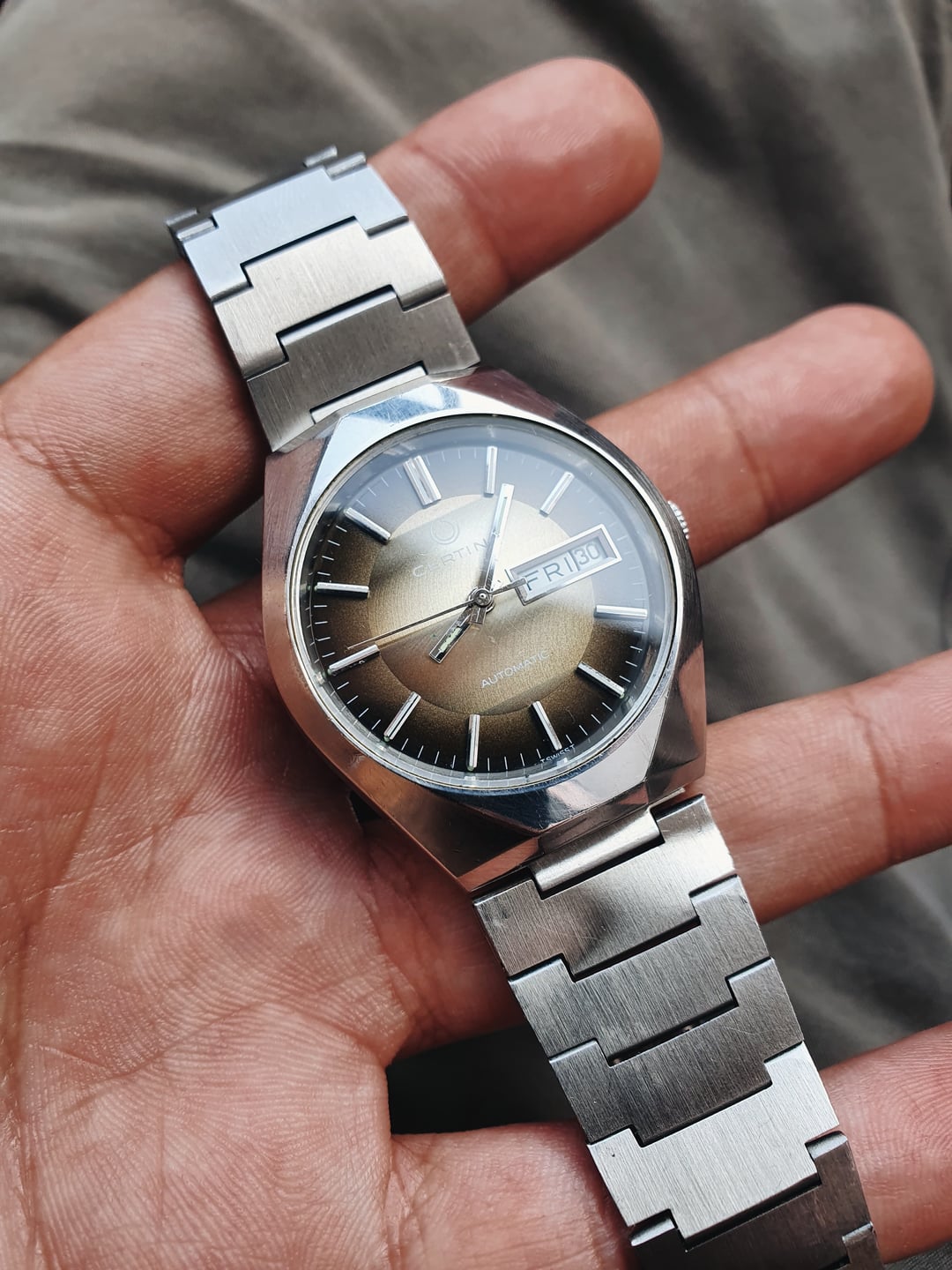 Funky case, fumé dial, and a reliable ETA 2789 automatic movement – what’s not to love about this 1970s Certina? This is one of the first of its kind to pop up for sale. Plus, it even includes the original stainless steel bracelet. **Condition:** Very good. The case and bracelet have some usage marks. The dial looks pristine. See detailed photos for full condition and clarity. **Case Size:** 35 x 40mm stainless steel case with a thickness of 11.5mm and a lug width of 18mm. **Crystal:** Acrylic **Movement:** ETA 2789, automatic, 25 jewels, 21,600 bph, and a power reserve of 47 hours. It has quickset day and date. I don’t know its service history, but everything is working as it should. **Other Information:** * Includes the original stainless steel bracelet. **Price:** Asking $250. Please add $20 for worldwide shipping. Payment methods include Wise, ACH transfer, Revolut, Bitcoin (On-Chain or Lightning), or PayPal G&S for buyers with solid references. Add +6% for currency conversion fees on the latter. I’m located in Portugal, but worldwide shipping isn’t an issue. Established seller with over 220 transactions – buy with confidence! Make sure to follow me on Instagram (@daily.worn) to check out the newest additions. Happy to answer serious inquiries. No trades, no lowballs. [Pictures](https://imgur.com/a/FLAjgQK) [Timestamp](https://imgur.com/a/wMvWMKl)