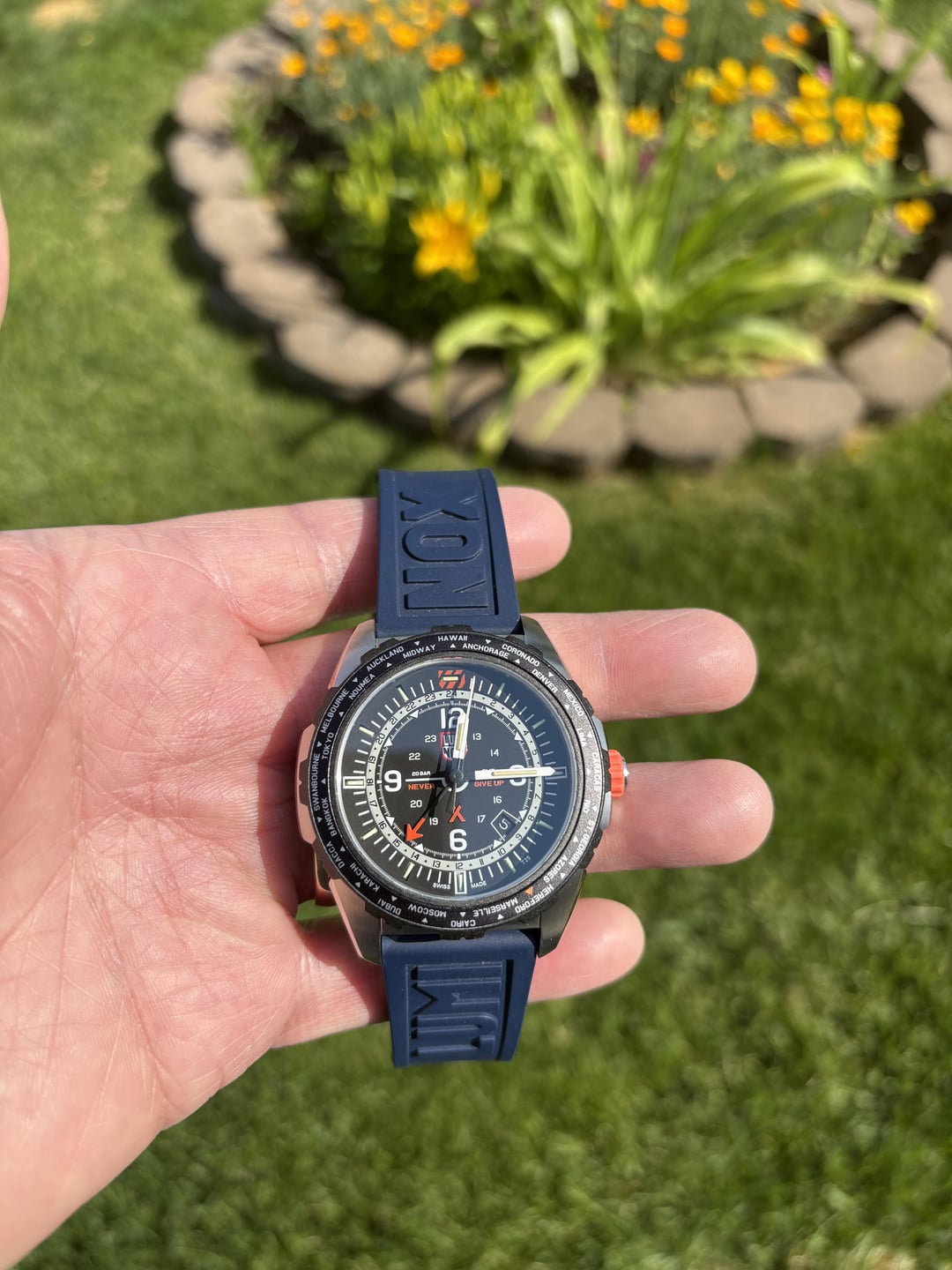Up for sale - A robust and functional watch, great for adventurers and aviation enthusiasts. An orange-tipped GMT hand with Bi-directional rotating bezel, made from Luminox’s proprietary CARBONOX™+ material, features 24 cities. The 45mm case, 13mm thick, crafted from 316L stainless steel with 200 meters water resistance. Sapphire crystal with anti-reflective coating. Asking: $225. CONUS - Zelle, Venmo, PayPal. Thanks for looking.