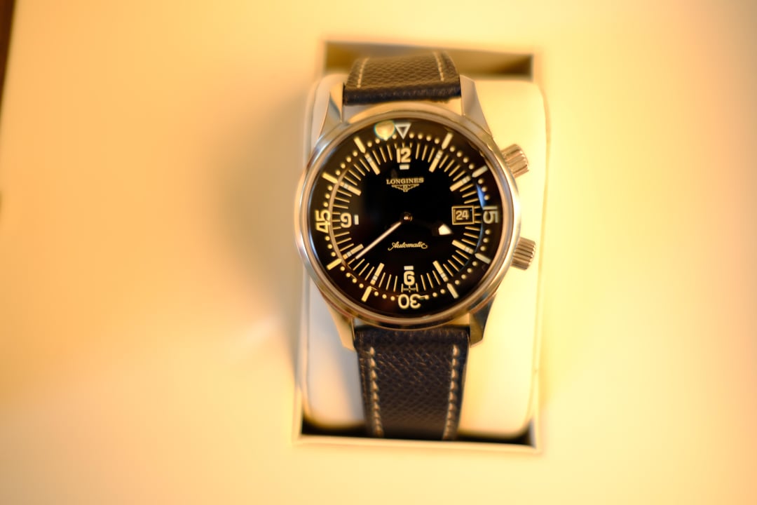 **\[WTS\] Longines Legend Diver (Date Model) – Full Kit w/ Collector Packaging – $1,550 (TX, USA)** For sale is my **Longines Legend Diver**, the early-date model with the classic 42mm case and internal rotating bezel. This is one of the first versions that came with the **collector’s presentation kit**, including the full wooden display box, unused branded wallet, and still-wrapped hardcover book. Originally purchased from **Moyer Fine Jewelers via eBay**, a well-known and authorized Longines dealer. Their original thank-you card is included. **Details:** * Model: Longines Legend Diver Date * Reference: L3.674.4.50.0 * Case Size: 42mm * Movement: Automatic L633 (ETA 2824-2 base) * Dial: Gloss black with internal rotating dive bezel * Water Resistance: 300m * Strap: 22mm **navy Molequin grained calf strap** (premium aftermarket) **Included with Sale:** * Original Longines **wooden presentation box** * **Outer cardboard box** * **Still-sealed Longines-branded smart wallet** * **Still-wrapped “Sports Legends” hardcover book** * **Original hang tag** * Original inner cushion, packaging folder * **Thank-you note from Moyer Fine Jewelers** * (Warranty card not present) **Condition:** The watch is in excellent condition, just shy of “like new.” No major marks or dings — only faint signs of wear under close inspection. The crystal is flawless, and the internal bezel rotates smoothly. The Molequin strap is virtually unworn. **Price:** **$1,550 USD** Includes fully insured shipping via USPS Priority (U.S. only). Payment accepted via **Zelle**, **Venmo**, or **PayPal Friends & Family** (no notes). No trades at this time.