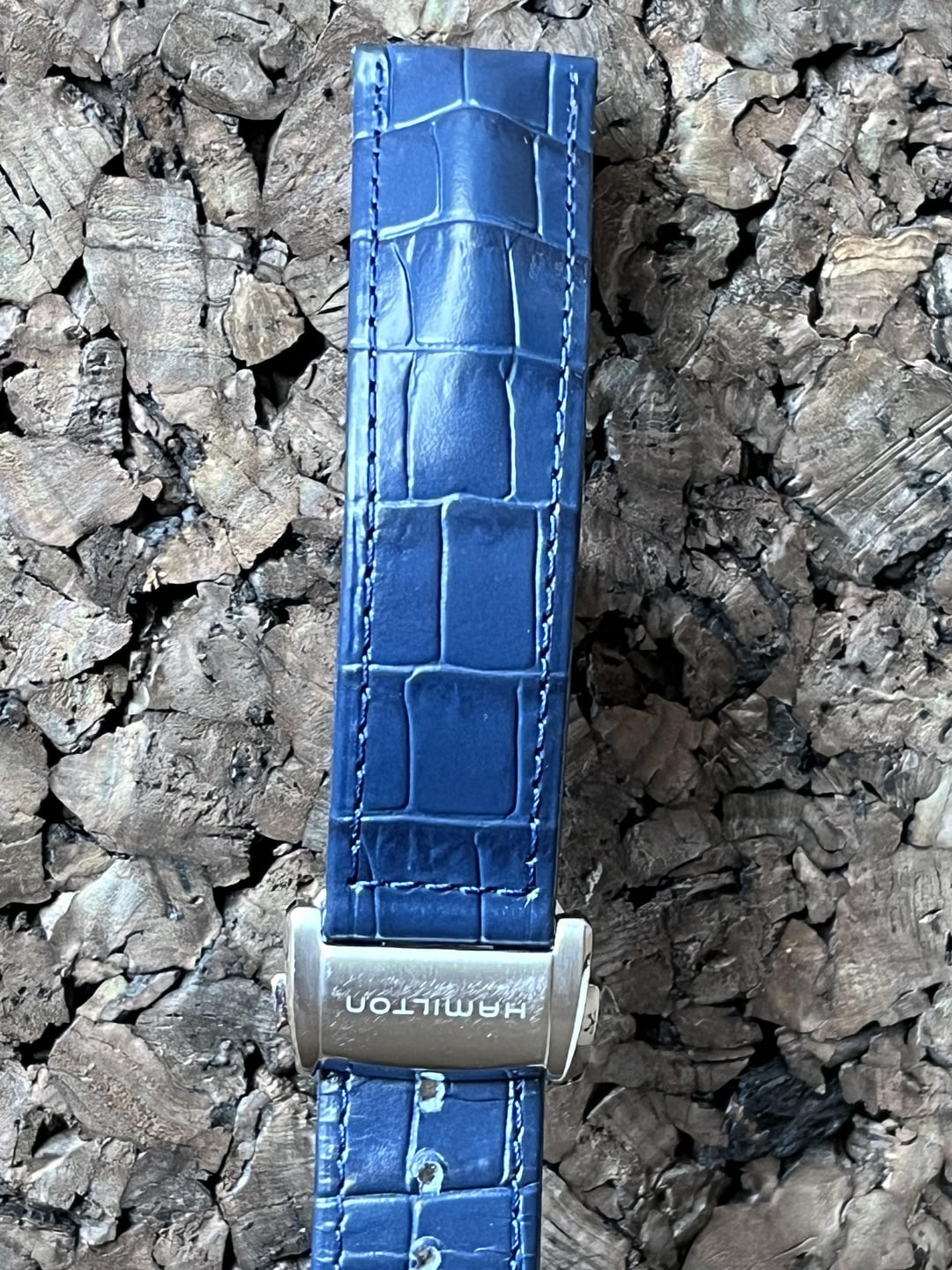 [WTS] 20mm Hamilton Croc-Calf strap, Blue, Raised Center "Chronograph style" with Hamilton Deployant 11