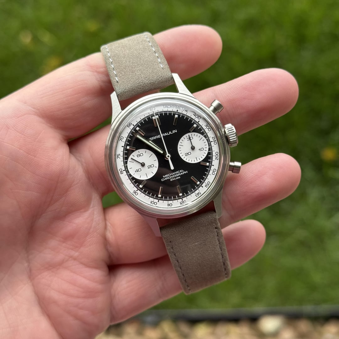 Hey all, up for sale is this cheap and fun Pierre Paulin Chrono with I believe the Seagull mechanical movement. Timestamp: Price: $75 USD shipped CONUS, if you're international please message to inquire about shipping/payment options Payment: Zelle, Paypal, or if you have 10+ positive feedback and are based in the US I will take CC via Stripe Portal as an option (+3.5% to buyer). MN buyers without a reseller certificate (ST3) will be subject to sales tax. PM/comment any offers or questions! Based just outside of Minneapolis, MN. I'm a full-time jeweler and watch dealer, so I'm rarely opposed to trades although I'd prefer to sell this piece outright. If you do have a trade that will be less than the value of this watch, send pictures and info to my messages and I'll take a look. Thanks for reading!
