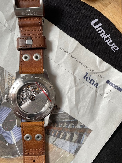 Il s'agit du modèle bien connu, la flieger stowa 40mm calibre auto ETA 2824-2 avec logo "STOWA" et la date, top finitions avec vis bleuies , avec le nom de Jörg Schauer sur la masse oscillante, ce qui n’est plus le cas aujourd’hui.
