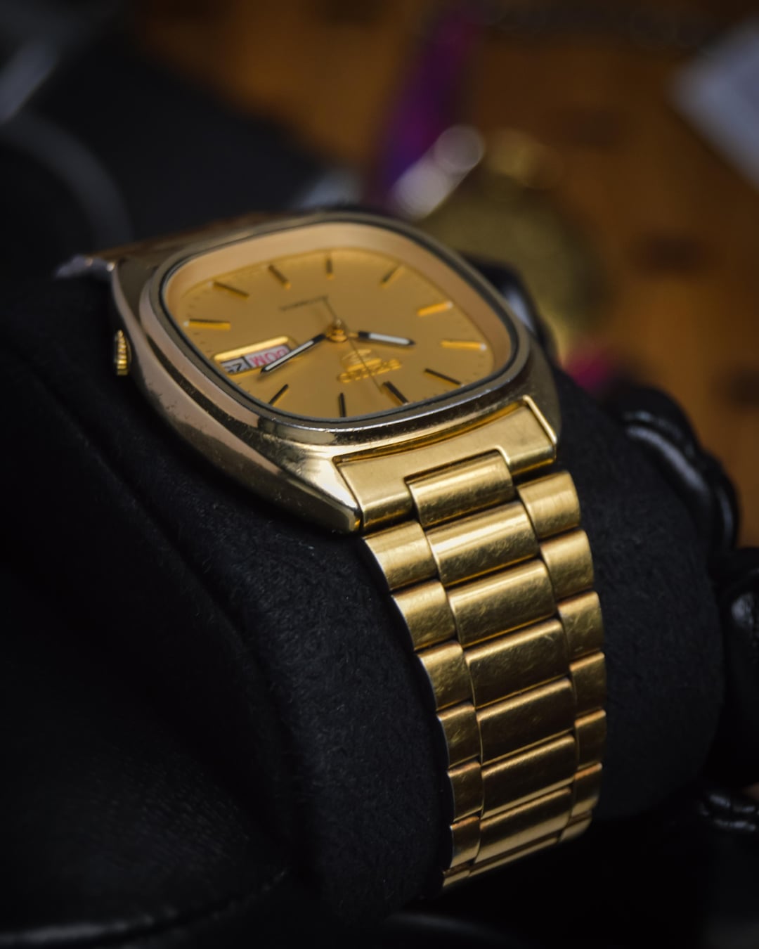 [Timestamp](https://postimg.cc/87DrmwjB) Step back into the golden era with this **June 1983 Seiko 5, reference 6309-5800**. Featuring a bold retro TV-shaped case with a striking SGP (Seiko Gold Plated) finish, this vintage beauty is a true collector’s piece. The original gold-tone bracelet perfectly matches the case, creating a cohesive and luxe look. Its champagne dial displays a rare and elegant *cross-hatch texture*, giving off a refined shimmer under different lighting. Pencil-style lume hands and minimalist stick indices keep the look sleek and legible, while the Spanish day-date window adds some international flair. Runs on Seiko’s 6309 17-jewel automatic movement—classic, reliable, and built to last. 🔹 **Dimensions**: • Case Width: *35mm* • Lug-to-Lug: *39mm* • Lug Width: *18mm* • Thickness: *10mm* 💰 **Asking $169 shipped worldwide via UPS.** Payment via **PayPal F&F** or G&S (+4.5% international G&S fee). DM for more info or a custom timestamp and follow my profile for more—perfect piece for anyone who appreciates the golden age of Seiko design.