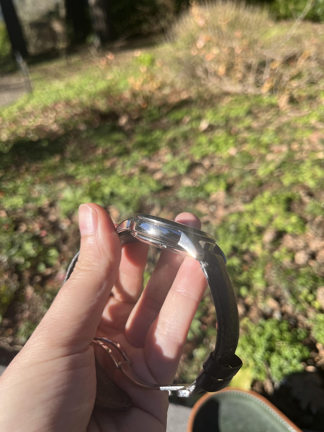 Hi WatchEx I just got this watch. It has a great enamel dial white pops out beautifully and it is super comfortable on the provided strap. Alas I decided to simplify my dress watch collection to get my grail. This needs to go. I can only ship to CONUS. Watch has no signs of wear but strap does since it has a bracelet like clasp. I have put it on a navy color. Strap gave it a modern vibe. It is 40mm and hands are blued. It has box with no papers. Asking $999 prefer Zelle and Paypal F&F Including shipping and aftermarket strap.