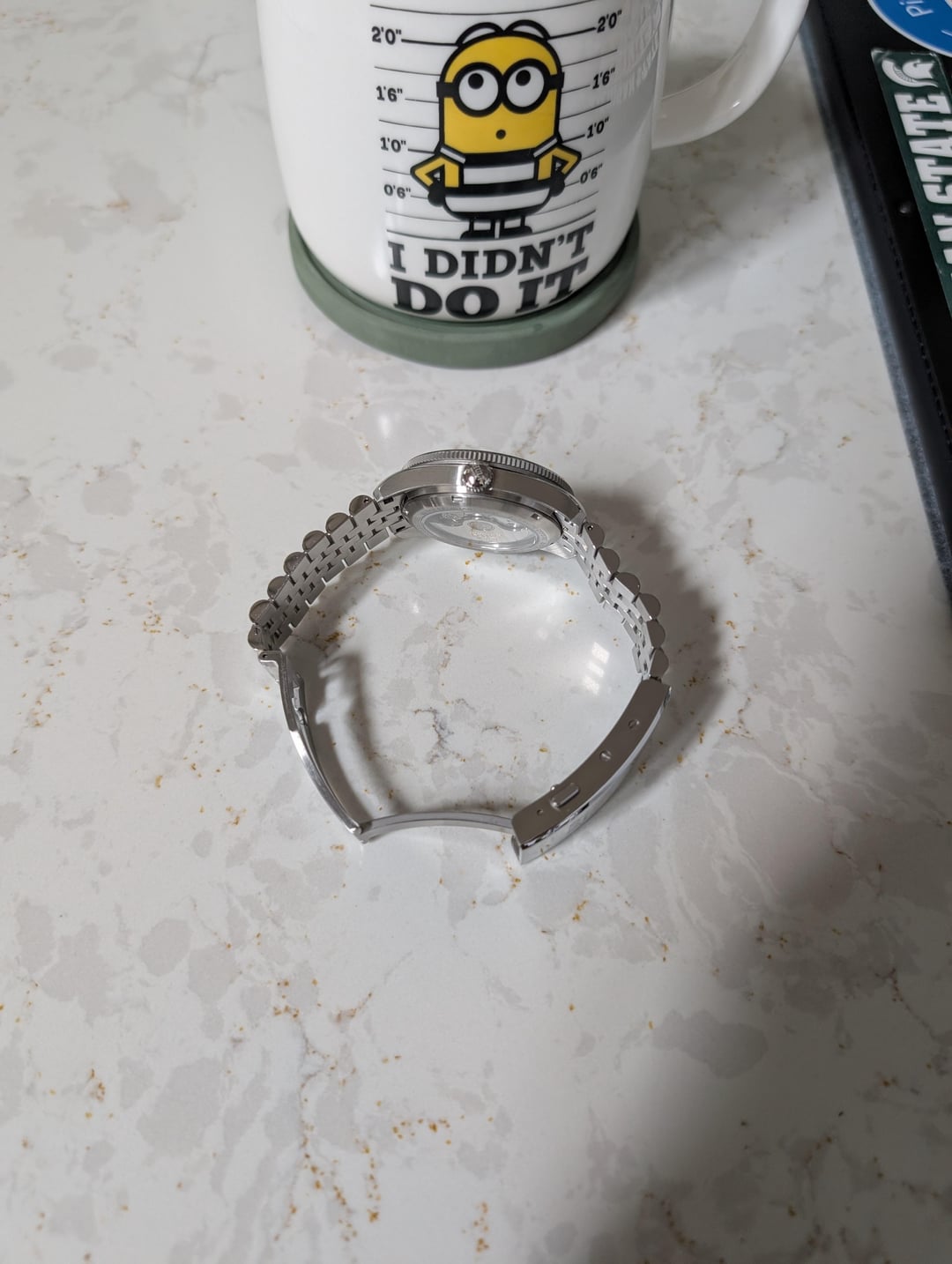 Good afternoon, WatchEx fam, Trying to slim down my collection, since I only have 1 slot for a diver and currently have two of them, maybe trying to let this one go. Just got it last month, currently sold out on Hult watch website. The Hult Aquatique 37mm in Forest green. MSRP is $500, I got it with the Kickstarter price at a slight discount but I paid $152 tariff on it with over a year of waiting. Asking for $410 shipped within CONUS. If you are interested in it but didn't get in. This is your chance. I've reach high and low for a mid size slim diver, this is as close to perfect as I want one to be. Sits just right on the wrist, see wrist and mirror shot for a 6.25 wrist. I do wish it has drilled lugs and a 12 hours bezel though. Key specs: Diameter: 37,4mm Thickness: 12,20mm including sapphire crystal front and back Lug-to-lug: 43,5mm Lug width: 20mm Let me know if you have questions, you can see my post about it on my profile, lume is amazing as well. Thanks for looking and have a great day