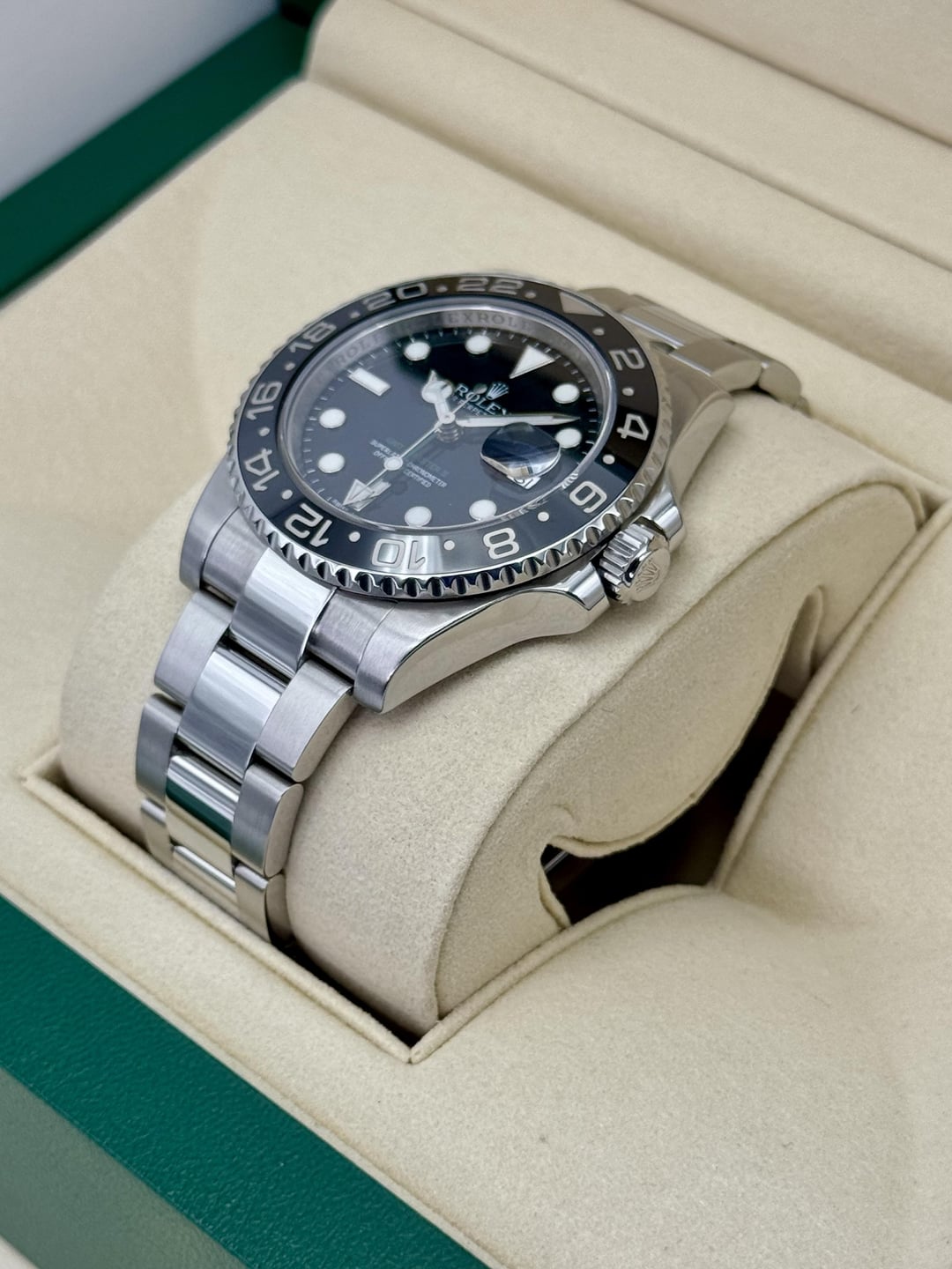 # 🔵2012 Rolex GMT-Master II 40mm 116710LN Stainless Steel Black Dial **🔵NOTE: Bezel had minor scratches** **🔵TRADE or SELL us your luxury watch, all brands considered. Message me details.** **Includes the following:** **✔️Original Rolex Double boxed** **✔️Box and Papers - Yes** **✔️Warranty card dated 2012** **✔️Manual and Warranty booklets** **✔️Red Hang Tag included** **✔️Size: 8.0inch wrist (Full Links)** **✔️Watch is in excellent overall condition. Please see photos for details.** **✔️**[**Trades**](https://mywatchllc.com/pages/sell-rolex-watch) **welcome** Business Name: **My Watch LLC** LOCATION: Oak Park, Michigan ✔️[MyWatchLLC.com](http://mywatchllc.com) for current inventory ✔️Google Business Listing [https://g.co/kgs/Cmd6FPW](https://g.co/kgs/Cmd6FPW) ✔️Business Hours M-F 9-6 ✔️Facetime/Video chat/calls welcome to view the watch interested. ✔️Contact: 248-422-0909 via text or call for quickest response. 🟢TERMS: Visit [MyWatchLLC.Com](http://mywatchllc.com) for payments accepted 🟢REFERENCES/REVIEWS: We are well reviewed on all platforms from google, trust pilot, rolexforums, additionally we have 300+ reference in multiple FaceBook watch groups, reference checks welcome. 🟢SHIPPING: If you are not local, we offer Fully Insured FedEx overnight shipping in the USA for a fee. International shipping available. [https://mywatchllc.com/products/2012-rolex-gmt-master-ii-40mm-116710ln-stainless-steel-black-dial-7](https://mywatchllc.com/products/2012-rolex-gmt-master-ii-40mm-116710ln-stainless-steel-black-dial-7)