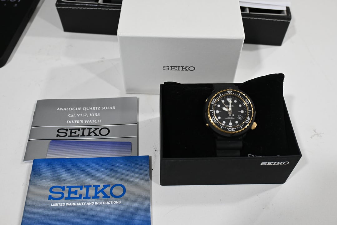 Downsizing my collection. The only watch here that has 8.5-9/10 condition is the G-Shock frogman which I bought second hand but includes an extra bezel and strap OEM new. The rest of the watches were acquired recently new and are all in MINT condition. \- Shipping to CONUS included by UPS \- All are sold as full set with box and papers \- Payment via Zelle or Venmo 1) Seiko SPB381 \- Price: $899 \- Condition: Mint; used a few times so there are some minor scratches on bracelet. Bracelet was sized and extra links are included. 2) Seiko SRPE99 Turtle Pepsi Padi \- Price: $229 \- Condition: Mint; bracelet new unsized with stickers 3) Seiko Mini turtle SBDY083 Green \- Price: $329 \- Condition: Mint; bracelet sized, extra links included 4) Seiko SSK001 \- Price: $249 \- Condition: Mint like new; bracelet sized, extra links included 5) Seiko recraft SNKP23 SOLD SOLD SOLD \- Price: $109 \- Condition: New, watch unused; stock bracelet was changed to a mesh bracelet in new condition 6) Seiko Solar tuna SNE498 \- Price: $299 \- Condition: Mint 7) Casio G shock Frogman GW8230B-9A \- Price: $499 \- Condition: 8.5-9/10, includes extra bracelet and bezel new; to make it look like new 8) Casio G Shock GWB5600CD1, limited Darwin edition \- Price: $149 \- Condition: Mint, like new 9) Bulova Ocenographer GMT Pepsi 96B405 \- Price: $399 \- Condition: Mint