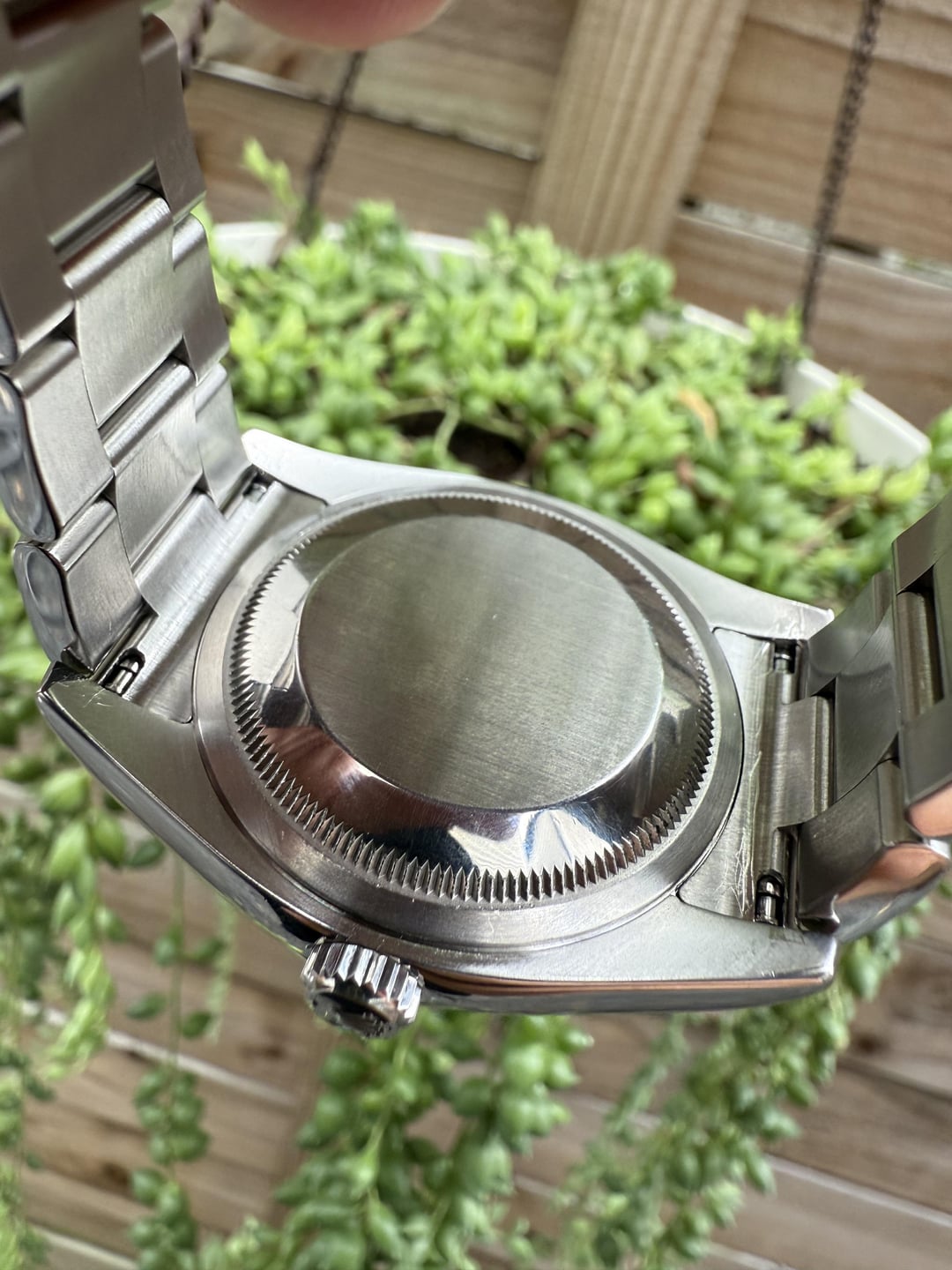 Up for sale is a Rolex Oyster Perpetual 116000 with the highly desirable blue 3-6-9 Arabic dial. This is a scrambled serial, indicating a newer production range, and it’s in mint pre-owned condition with only light signs of wear. Fully linked and ready to go – no box or papers. ⸻ Details: • Model: Rolex Oyster Perpetual 36 • Reference: 116000 • Dial: Blue 3-6-9 Arabic Explorer-style dial • Case Size: 36mm • Movement: Rolex automatic (Caliber 3130) • Serial: Scrambled • Bracelet: Oyster – fully linked • Crystal: Sapphire • Water Resistance: 100m ⸻ Condition: • Mint pre-owned condition • Very light signs of wear • Watch only – no box or papers • Fully linked $5500+ label wire / zelle Storefront located in Houston Tx