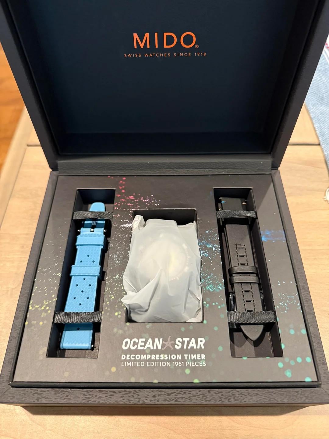 Hello everyone, I’m selling my Mido Ocean Star Decompression Timer 1961 Black PVD Limited Edition Automatic Watch today * The overall condition is like new. The watch was only worn a handful of times, & I can't find a single scratch throughout the watch case or bracelet * It comes with all the following contents: box, stamped/dated warranty card, leather & rubber straps, tags, & the instruction booklet * I’m asking for $1,100 FIRM with $30 shipping CONUS * For anyone located in Illinois, I’d be happy to arrange for local pickups and avoid shipping the watch * I accept PayPal F&F, Zelle, Venmo, or bank transfers * Please buy with confidence! I have plenty of positive feedback on my eBay store (linked in my Reddit bio), & I want to maintain a good reputation on this platform to continue selling watches * Feel free to message me with any questions, comments, or concerns!