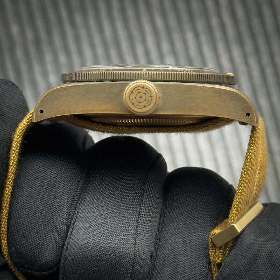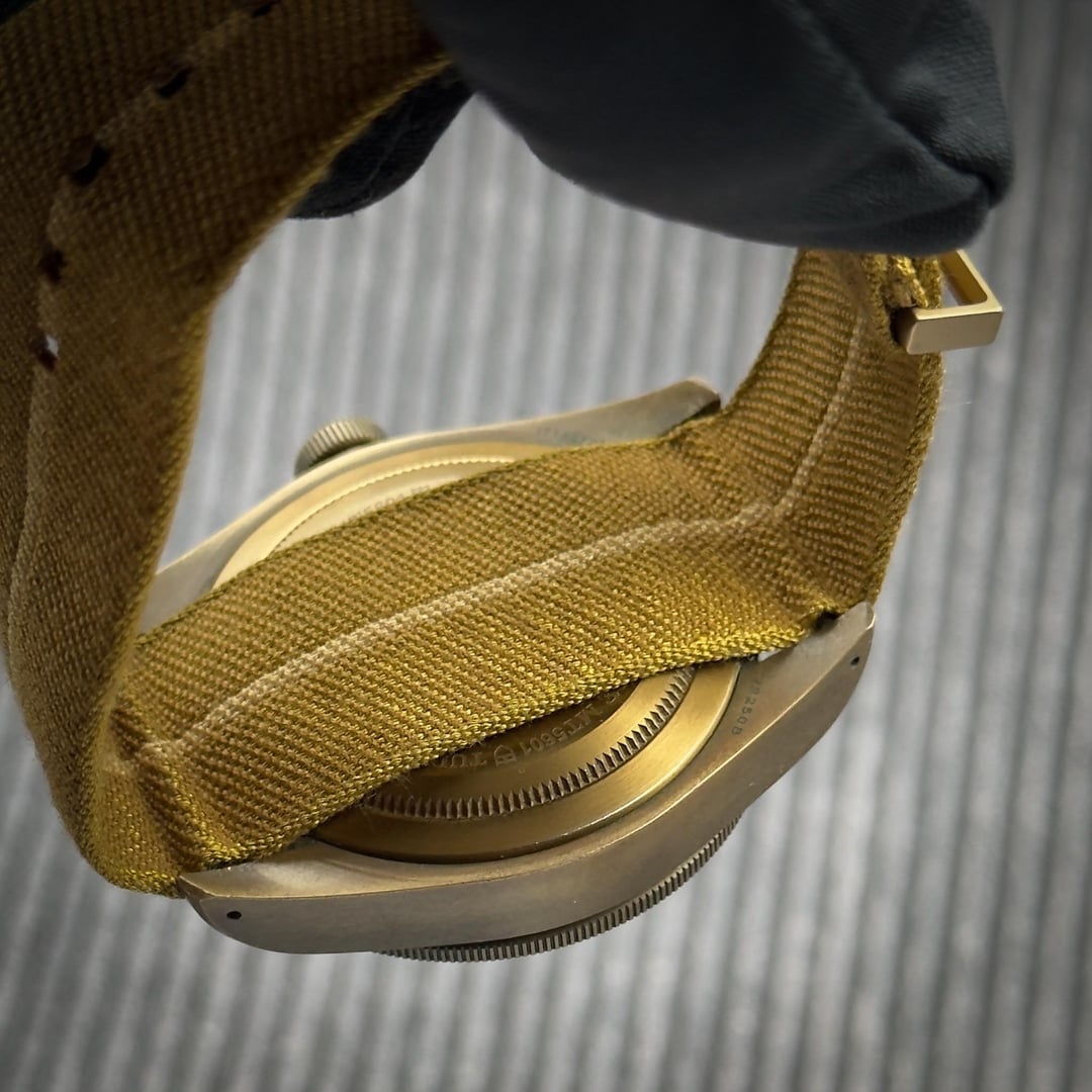 This pristine watch is in on a TDR Bronze NATO strap and is in mint pre-owned condition — please see my macro photography for the closest possible look. The set is also in mint condition, and includes both original boxes, warranty card, and operating instructions. 💲Here for 2️⃣2️⃣8️⃣7️⃣+L. 📍Ships from Austin, Texas FedEx priority overnight fully insured ⏱️ Timestamp: https://imgur.com/a/BG3A0Oj