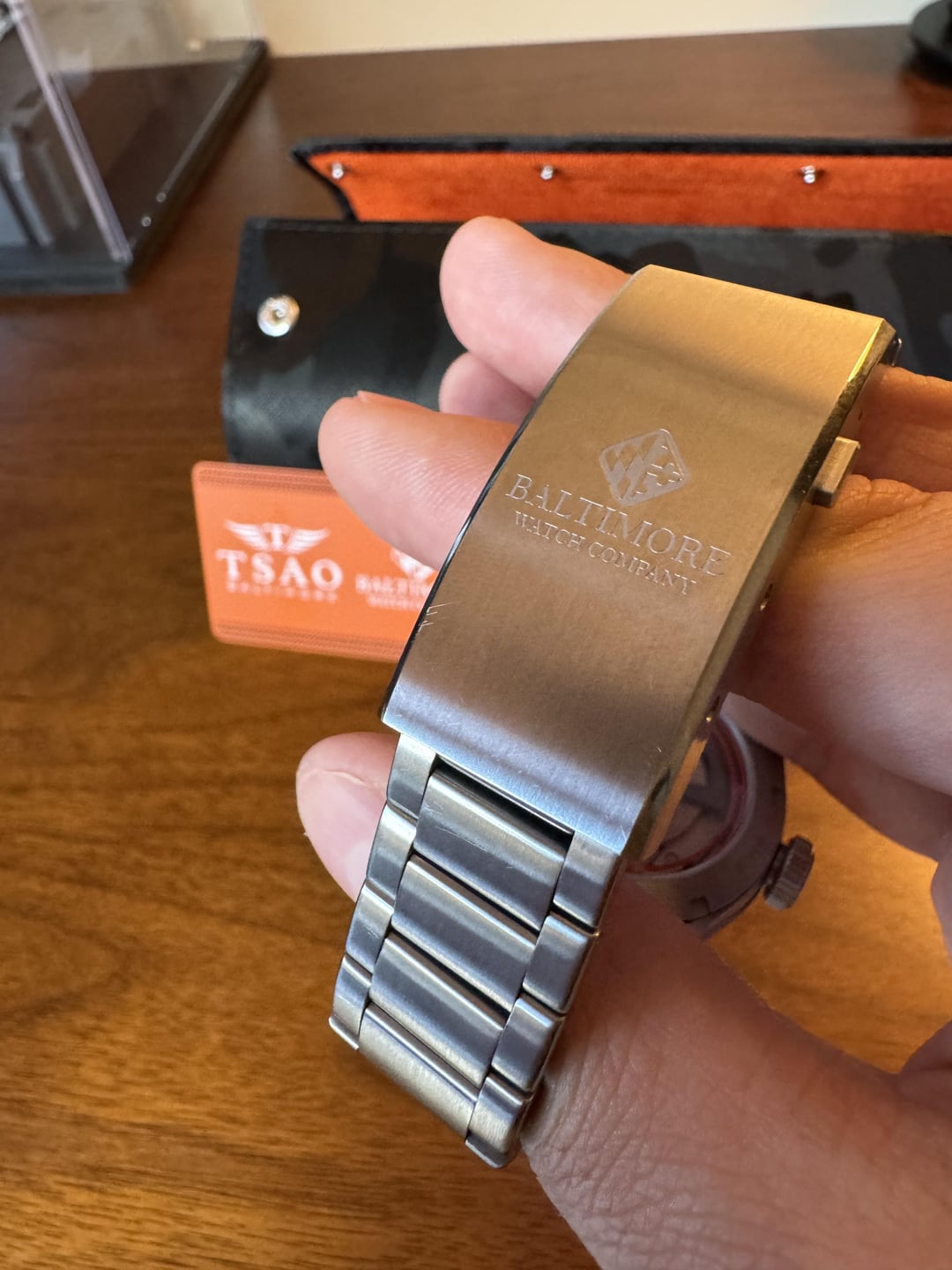 Tsao Baltimore Balt Pilot Recon - Blue Meteorite The Balt-Recon is a light weight, durable pilot watch thanks to its grade-2 titanium with a 1200HV hardened coating. It’s predominantly brushed finish gives it a rugged tool watch feel, but the gorgeous blue meteorite dial will remind you that not only can this watch take a beating, it can look gorgeous while doing it. The meteorite dial is stunning, seemingly shifting in texture and color through different lighting conditions, almost making it seem alive. The numbers are incredible legible, making it easy to read at a glance; though the beautiful dial will make you stare at it for just a little while longer. There is no shortage of lume on this watch, the numbers and hands glow so bright it makes it seem like the entire dial is glowing, making it almost feel like the meteorite itself is glowing. Additionally, the ring and plane motif on the crown is lumed, which is such a unique and awesome touch. Timestamp: [https://imgur.com/ROIuVb8](https://imgur.com/ROIuVb8) Pictures: [https://imgur.com/a/tsao-baltimore-balt-recon-blue-meteorite-w4JTMR1](https://imgur.com/a/tsao-baltimore-balt-recon-blue-meteorite-w4JTMR1) What's included: Watch, 5-year warranty, 3-watch travel roll, and an additional rubber-hybrid strap. Condition: The head of the watch is in fantastic condition. The bracelet and clasp mostly have some small scratches and scuffs that require harsh lighting to see, if you’re really looking for them. But there are some easy to see scratches to the coating in the bracelet. Lastly, there is some deformation to a couple of the pin holes on the bracelet; completely unnoticeable when wearing or storing the watch, but easy to spot when giving it a closer look. I did my best to clearly display the wear marks. Price: $650 w/ shipping included. US only Payment Method: Zelle, Paypal, Venmo Happy to answer any questions!
