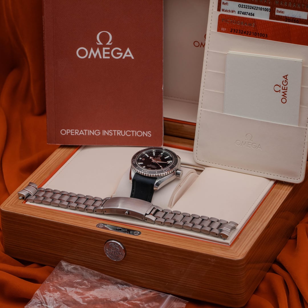 2016 Omega Seamaster Planet Ocean 600M 232.32.42.21.01.003 — Great condition W/ Inner Box, Warranty Card, and Pictograms Card + AM BraceletThis Omega Seamaster Planet Ocean 600M Co-Axial Master Chronometer (Ref. 232.32.42.21.01.003) is a rugged yet refined dive watch — a perfect choice for those who appreciate both performance and style. This 42mm stainless steel piece features a black ceramic bezel, a striking black dial with bold hour markers, and is mounted on a sporty black strap. Price: $3,750 • Payments accepted: Wire, Zelle, Credit Card (+3.3%) • Fully insured overnight shipping via FedEx. Details:This piece is pre-owned and in excellent condition overall. Some normal wear is present, but no heavy scratches, dings, or dents. This comes with the inner box, manuals, warranty, and pictograms card. This will also come with an after market bracelet. Please refer to the high-resolution photos for an accurate representation — we highlight imperfections with macro photography rather than conceal them. Dust or lint may be visible in photos but does not reflect the watch’s condition. Trades:We happily accept trades of most luxury watch brands. Whether you’re looking to trade up, down, or structure a multi-watch deal, we’re here to make it work. Brands we accept include: Rolex, Patek Philippe, Audemars Piguet, Omega, Richard Mille, Tudor, Hublot, Panerai, Vacheron Constantin, and many more. Shipping: We ship fully insured via FedEx Overnight to your nearest FedEx location with hold for pickup for added security. FaceT1me/v1deo calls are welcomed for serious buyers — happy to answer any questions and showcase the watch in detail. Buy with Confidence:All watches we offer are 100% authentic and accurately described. We’re an experienced private dealer with a reputation for integrity, and references are available upon request. Our goal is to ensure a smooth, professional, and trustworthy transaction every time. Connect: 🤝 Contact info: https://kaiposcollection.shop 📍Located in Dallas, Tx Timestamp -> https://imgur.com/a/MR9jJ6o