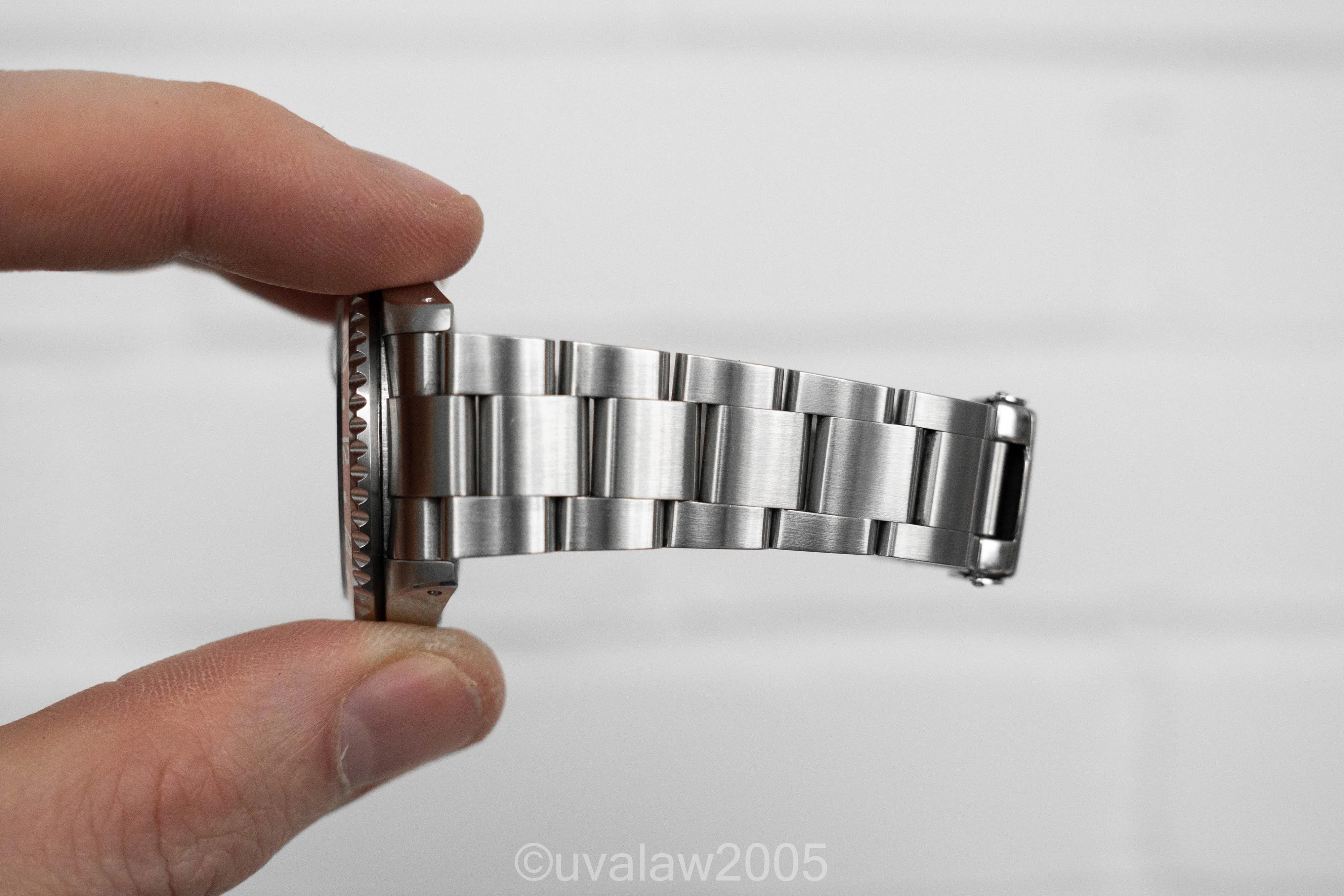 Caliber 3185 movement is running beautifully at +3s/day on the timegrapher, though service history is unknown. A-serial dates it to 1999. Watch is in very good condition with normal surface wear, most notable mark is on the lower right lug. 78790A bracelet with AB clasp has very light stretch and is sized to my 7" wrist with one extra link.