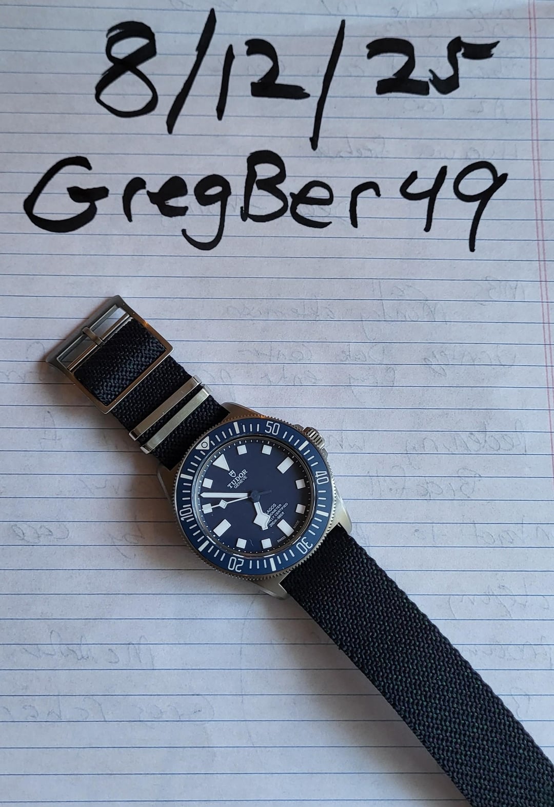 Selling my outstanding condition Tudor Pelagos FXD blue. The best, most comfortable Pelagos and this blue looks amazing. Comes with all boxes and cards as shown so almost all of the Rolex / Tudor factory 5 year warranty left. It comes with the blue OEM single pass rubber, but not the OEM fabric nato. I am including 5 additional excellent condition barely worn single pass natos, 3 BlueShark ribbed and 2 Crown and Buckle premium Chevrons. [timestamp ](https://postimg.cc/75zTFSpH) $3150, not looking for any trades. Plenty of references from over 200 sales that I would be happy to share. Thanks for looking! Greg