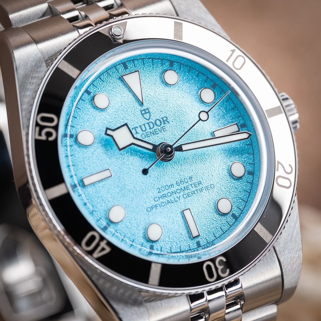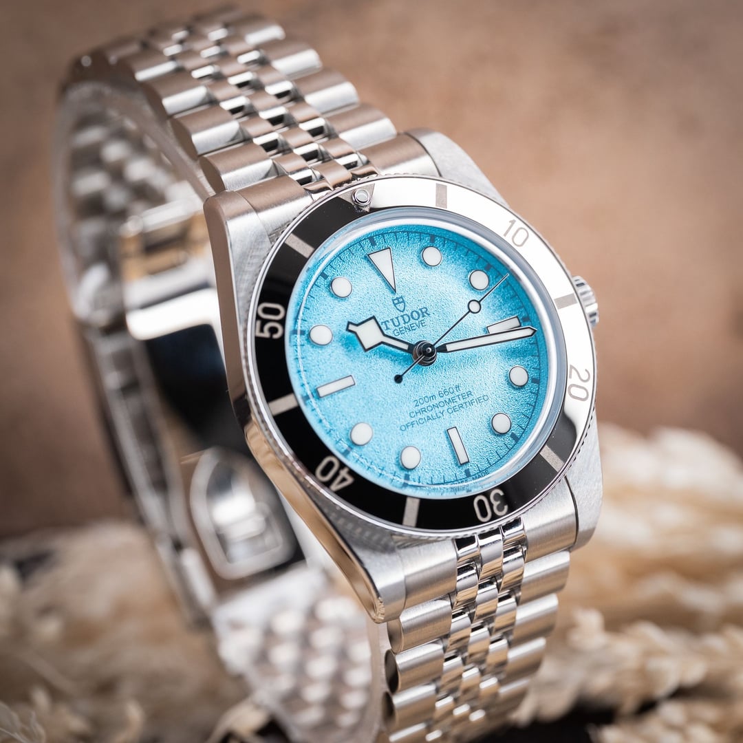 Album: [https://imgur.com/a/jPFgvpv](https://imgur.com/a/jPFgvpv) Timestamp: [https://imgur.com/3C5H2iC](https://imgur.com/3C5H2iC) Presented for sale is one of the most coveted releases from Tudor, the "Blue Lagoon." The Blue Lagoon is a Black Bay 54 derived variant that features an exquisite textured blue dial. Although the 37mm case size suggests that it is on the smaller side, this watch wears extremely well on most wrist and stunning dial creates the illusion that it is larger than its size would indicate. Finally the 5-link bracelet (aka Jubilee) with the T-fit clasp allows one to wear this for any and all ocassions as it is extremely comfortable to wear. \-Reference: 79000-0001 \-Size: 37mm \-Material: Stainless Steel Included with the watch: \-Double Box (inner & outer) \-Manual book \-Warranty Card (8/25) \-Serialized white tag \_\_\_\_\_\_\_\_\_\_\_\_\_\_\_\_\_\_\_\_\_\_\_\_\_\_\_\_\_\_\_\_ This watch is in new condition and is unworn and unsized! Tudor warranty until 2030! Please excuse any dust that may be visible as we use macro lens with intense lighting and magnification to accurately show the condition of the watch. \_\_\_\_\_\_\_\_\_\_\_\_\_\_\_\_\_\_\_\_\_\_\_\_\_\_\_\_\_\_\_\_ 💰 Offered here for 💲5️⃣7️⃣0️⃣0️⃣ 💸 Wire or Zelle preferred but CC accepted at (+4%) 🌎 Free overnight insured delivery to your Fedex location 🤝 Tons of references across various platforms - deal with confidence! Please feel free to ask any questions or concerns you may have with the watch. Additionally feel free to request as many pictures or videos as you’d like for your peace of mind. I am also available to hop on a FaceTime call to show you the watch. I am a professional watch collector that has done countless successful transactions within the watch community and across various platforms. Please feel free to utilize any vetting method you are comfortable with. Website: [https://piecesofkm.com/shop/](https://piecesofkm.com/shop/) IG: u/PiecesofKM FB: PiecesofKM