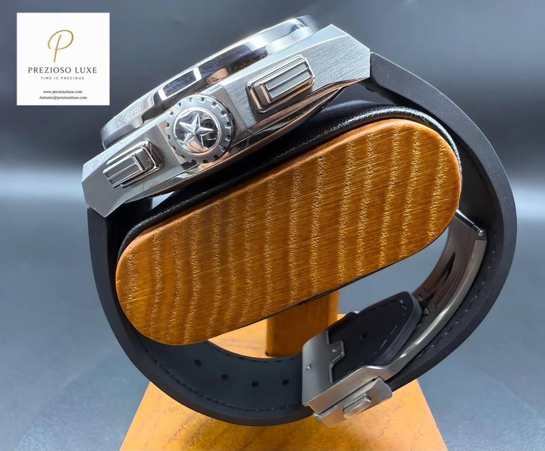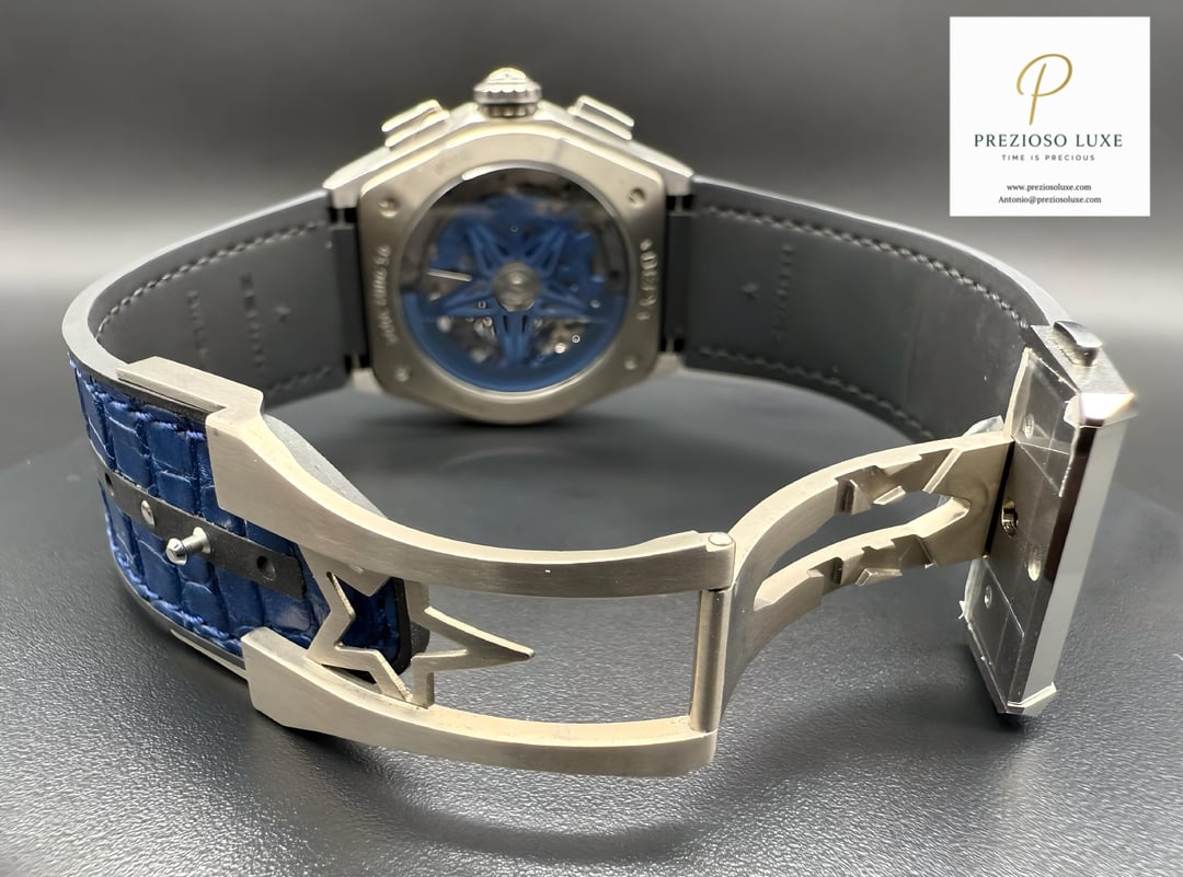 ZN 95.9002.9004/78.R584 Collection Defy. Series 21. Movement. Features Chronograph, Power Reserve Indicator, Small Seconds, 1/100th Seconds. Movement Automatic. Case Size 44 mm. Case Thickness 14.50 mm. Case Material Titanium. Dial Color Skeleton. Strap Material Rubber & Leather. (Alligator) Comes as complete set with open card Watch is in excellent pre-owned condition $6.5K plus 🏷️