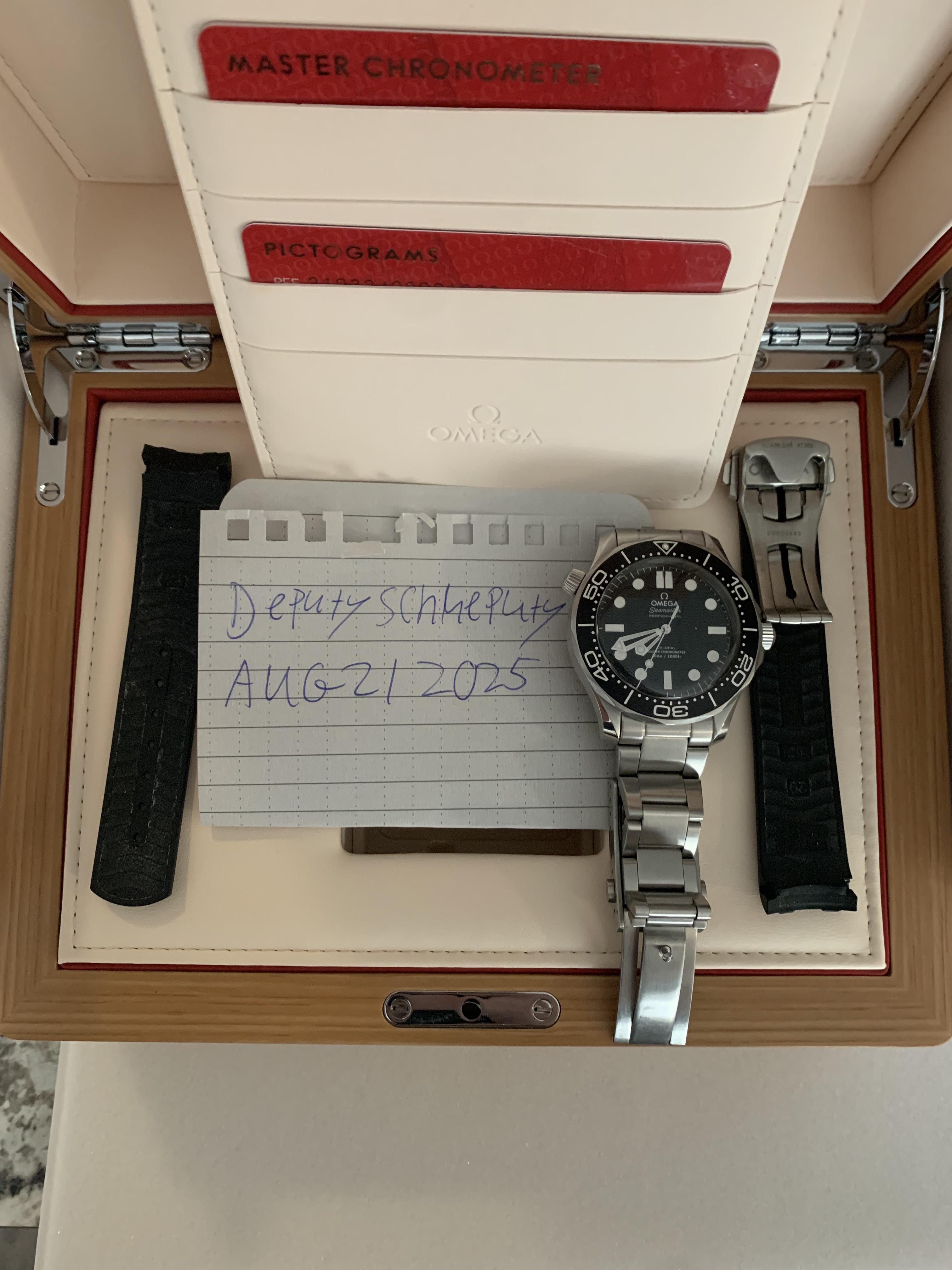 Selling my Seamaster pro no date with full kit. Purchased January 2025. I wanted to like this watch, but I couldn’t get into it. I have the full kit, warranty cards, box, receipt..etc. it includes the Omega rubber strap with deployment clasp and the fostner oyster bracelet. Like any good Omega owner the watch has effectively seen no action and has been a desk diver. The prices have shot up dramatically since purchasing it - I’m looking for 5,400 OBO. I’m open to FaceTime or whatever you want to verify and to feel comfortable that it’s legit.