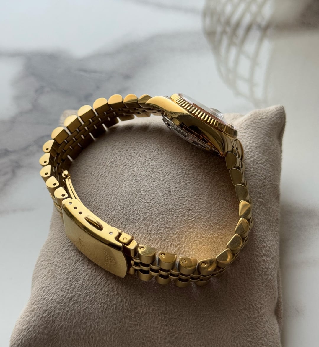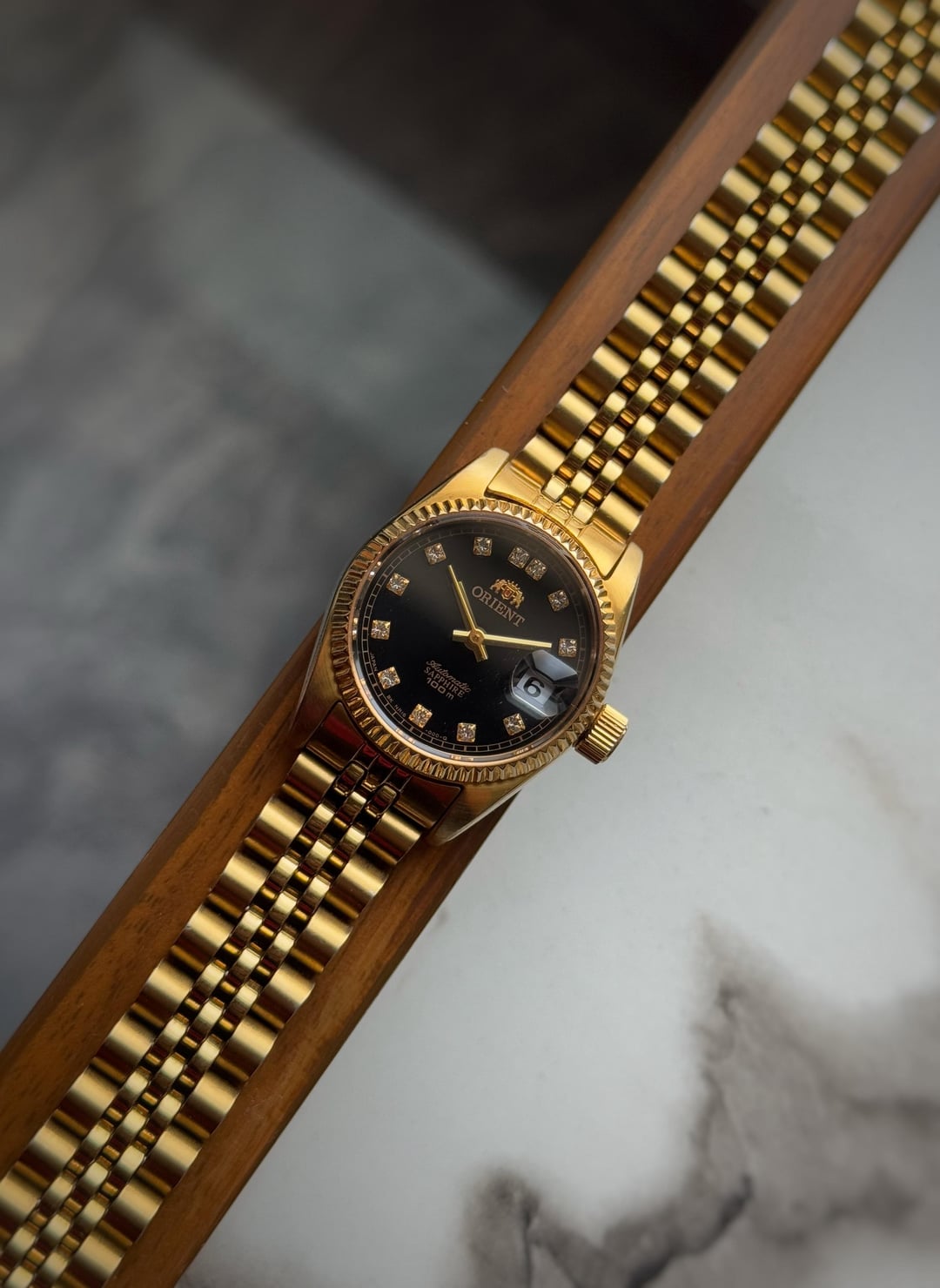[WTS] Orient Diamond Dial Lady NR16N0B - Great Condition, With Box (Serviced) only for 225$ Shipped 🚢 (Via FedEx) Up for sale is a Orient diamond dial ladies reference NR16N0B featuring a stainless steel/gold plated case with a case size of 25mm. Condition of the dial is super clean with a beautiful black colour and diamond markers. Sapphire crystal. Comes on its original Jubilee bracelet with full links that would fit upto easy 7.5 inch wrist. Few links of the bracelet shows signs of wear from the inside. Automatic movement working perfectly fine with no malfunctions and keeping accurate time since its recently serviced. Watch & Box only (The box is damaged at the hinges ) Asking 225$ shipped Via Fedex Payment through Wise/PayPal F&F only