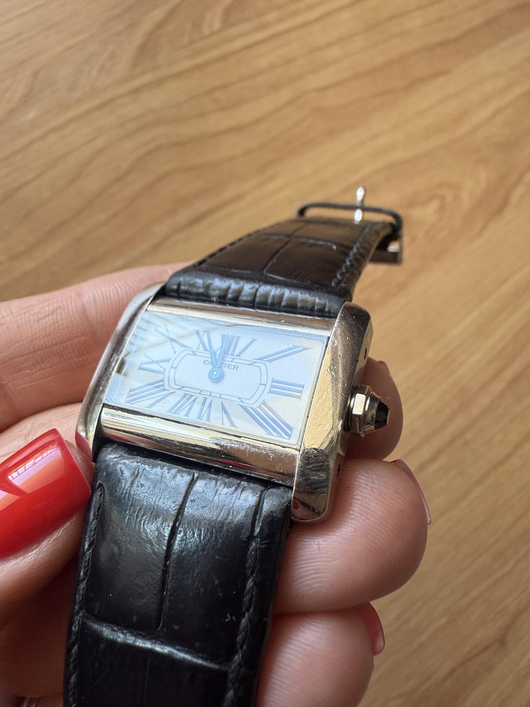 Hi all! For sale is an elegant Cartier Tank Divan Ref. 2599. • Movement: Quartz • Condition: Case in good shape with light scratches from normal wear (see photos). • Strap: Not original – the original Cartier leather strap was damaged and lost. Current strap is aftermarket. • Sale: Watch head only (no original strap, box, or papers). • Design: Classic Cartier with Roman numerals and blued hands. • Case size: 31.5mm, lug-to-lug 25.5mm, lug width 24mm. ✨ Beautiful and timeless Cartier piece, perfect for collectors or everyday wear. Price: $2200 USD – PayPal only, amount is without shipping and insurance (open to reasonable offers). Located in Canada, willing to ship worldwide. Payment via PayPal Goods & Services only. Happy to provide additional photos or a video upon request. Thanks for looking!