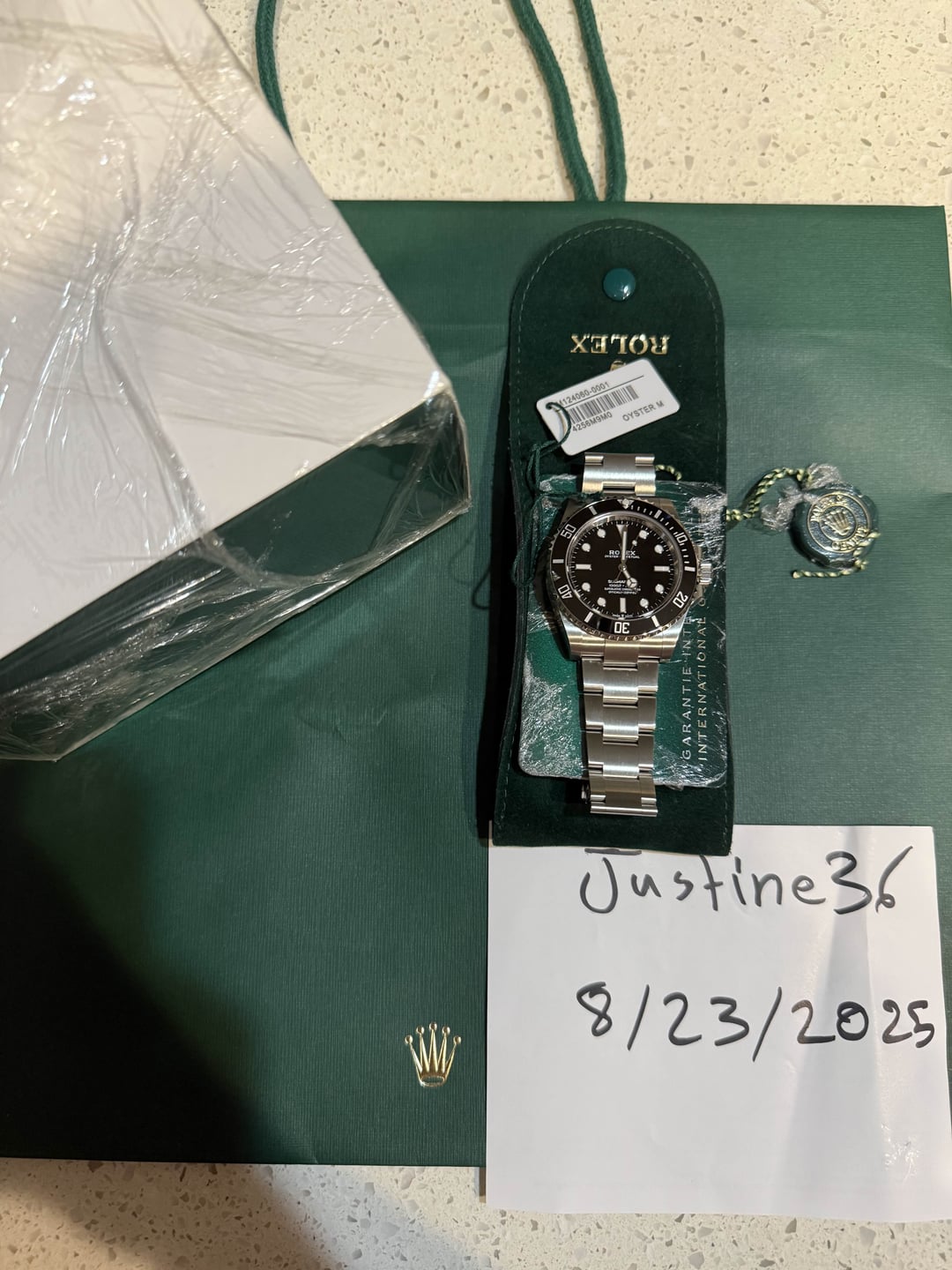 For sale is my Rolex Submariner “No Date” Ref. 124060. Condition: Unworn, card dated 07/28/2025 (about 3 weeks ago). Set: Full kit – box, papers, tags, warranty card, plus Rolex green travel pouch. Purchase history: Bought new by me directly from an AD. Verification: Willing to FaceTime/phone call, meet at a local PD, or verify/authenticate through any trusted/verified seller. Location: San Diego, CA. Price: $12,650 OBO (negotiable). Payment: Wire or Zelle only. I already have real offers from dealers in San Diego who have inspected it!, I think my price is fair but willing to negotiate a little, might accept trades depending on what watch it is! Happy to provide more photos or videos if needed. Any questions, feel free to shoot me a message. Thanks!