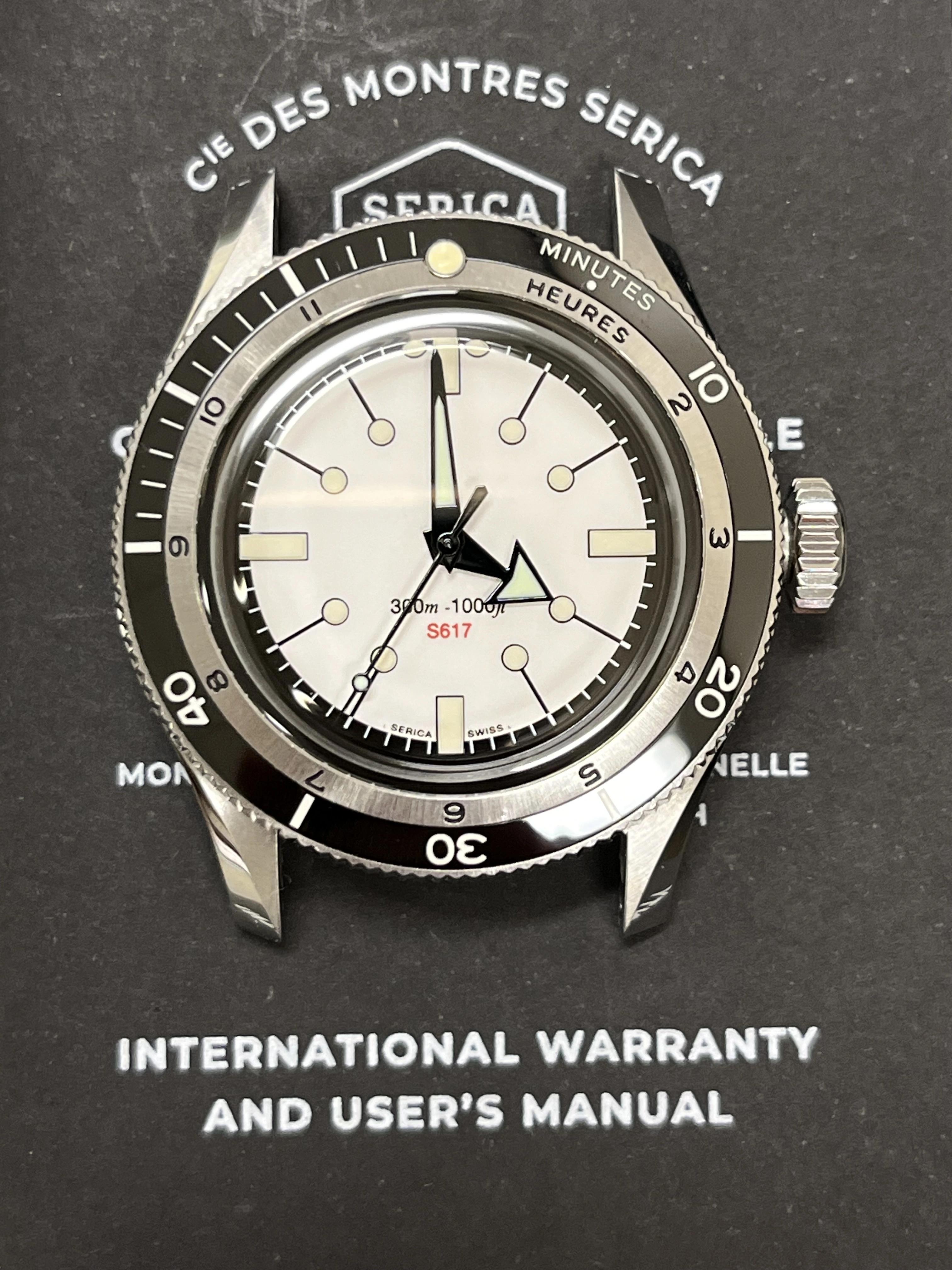 Hello up for sale is my early execution Serica 5303-2 39mm.  This is a full set; Included in the sale is outer box, presentation box, warranty booklet, hang tag, original stainless mesh bracelet (20mm lugs), and aftermarket black rubber strap.
