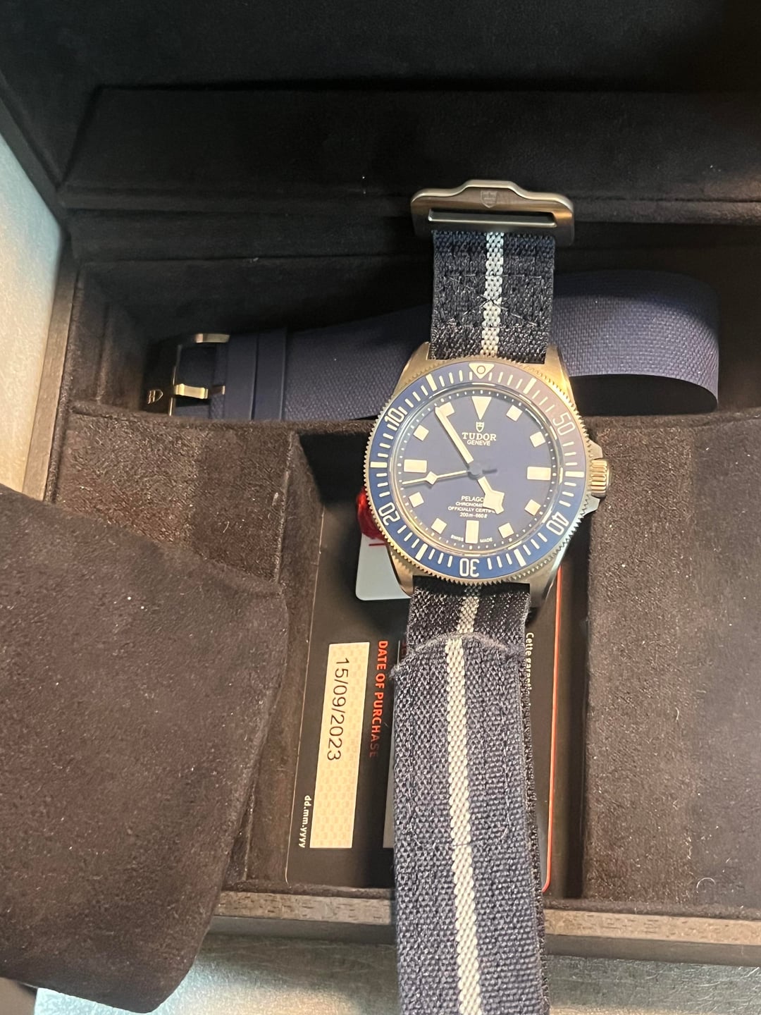 Catch and Release for me Tudor Pelagos FXD MN. Unfortunately, I prefer the black FXD and don’t have room for this one in the box. Comes full kit both straps, card, box etc. wear on sides of case but both straps, bezel, crystal etc. all in great shape. Selling for a negotiable $2700 but ideally looking for a quick sale to help fund another acquisition. CONUS only, PayPal or Venmo ideal.