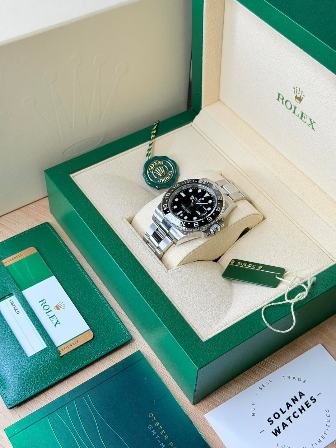 Selling this 40mm Rolex GMT Master II reference 116710LN / 116710 aka the Green Arrow.   **This watch is in excellent condition**.   **It comes as a full set**, including the Rolex green box, outer box, manuals, leather wallet, green hangtag, serialized hangtag, and warranty card dated 2015.   **Photos + Video:** * [Album](https://imgur.com/a/2015-green-arrow-october-2025-Xk71UqS) * [Timestamp](https://i.imgur.com/01jZsUq.jpeg) * [More on my Instagram](https://www.instagram.com/solanawatches/)   **Price is $12,900 delivered **in the US.   **I am a full-time watch dealer, and I have completed many transactions here. **I can provide additional references upon request.   **Feel free to contact me** via PM here so we can exchange numbers and get on the phone or do a video call.   You can also [find me on Instagram @SolanaWatches](https://www.instagram.com/solanawatches/).   _Private showroom located in San Diego, CA. Reach out to schedule an appointment._   _All my watches are guaranteed 100% authentic, and I will stand by their authenticity. _ _California buyers without a seller’s permit are subject to sales tax._