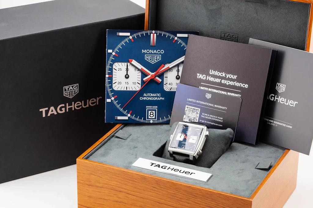 Up for sale is a brand new Tag Heuer Monaco Steve McQueen Calibre 11, reference # CAW211P.FC6356. It comes complete with all boxes, papers, booklets and Tag Heuer International Warranty Card dated October 2025.
