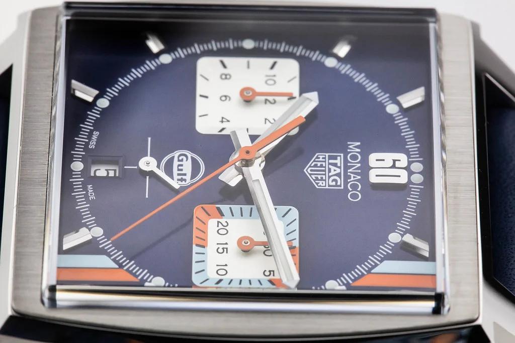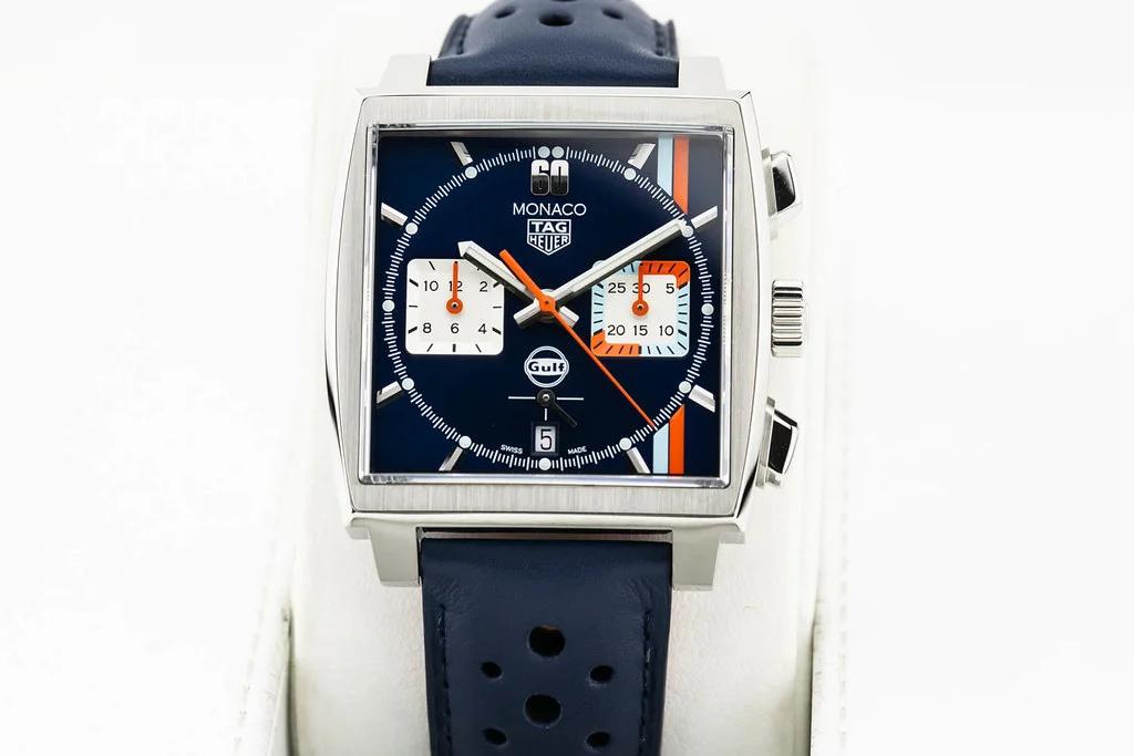 Up for sale is a brand new Tag Heuer Monaco Gulf Special Edition on Leather Strap, reference # CBL2115.FC6494. It comes complete with all boxes, papers, booklets and Tag Heuer Warranty Card dated October 2025.