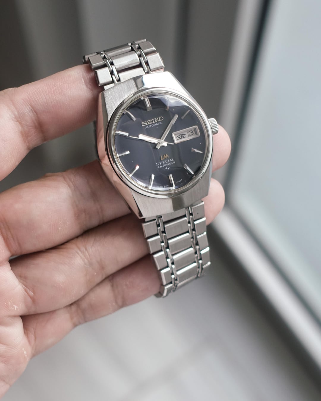 Hello WatchEx! Up for sale is this beautiful 1974 Seiko Lord Matic LM Special with a deep blue dial and faceted crystal. The dial is in really great condition for its age with very little patina. The photos don’t do it justice, but under daylight the dial has a very deep blueish purple hue that pops out. This is a JDM model watch so the daywheel can be set to English or Kanji. The case is also in great condition with minor polishing done to it. This watch has been recently serviced. It comes with a Seiko LM bracelet with full links that can fit up to a 7-7.5” wrist (depending on wrist shape). Sold as watch only and will be shipped in a replacement box. Ref num: 5216-7090 BMBY: Oct 1974 Case: 34.5mm w/o crown Lug to lug: 39mm Lug width: 16mm Thickness: 11.6mm Price: USD260 + shipping Shipped internationally using FedEx. Paypal F&F or G&S (+Paypal Fees) (For sale only. No trades please.) Album: [https://imgur.com/a/2A5kCtK](https://imgur.com/a/2A5kCtK) Timestamp: [https://imgur.com/CBsJORr](https://imgur.com/CBsJORr) . . **Following the advice on** r/WatchExchangeFeedback**:** **1) Please COMMENT FIRST before sending me a pm or chat.** **2) PayPal F&F is preferred. I will only allow G&S for users with successful transactions here on WatchExchange** **3) All duties and taxes are on the account of the buyer.** **4) I welcome requests for custom timestamp photos.** **5) All watches are sold “AS IS” with no personal warranty. I will only accept returns/refunds for issues that are undeclared on my end.** **6) Feel free to ask me any questions regarding my listings! You can also check my 170+ successful transactions here using the WatchExBot.**