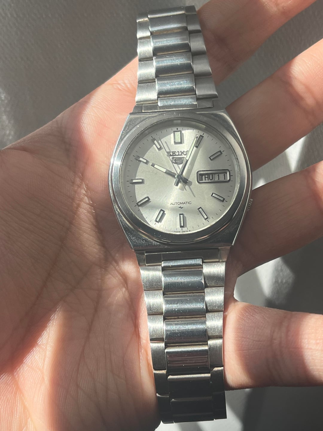 Imgur link w/ more pics/timestamp below. [https://imgur.com/a/seiko-5-7009-oocAPOo](https://imgur.com/a/seiko-5-7009-oocAPOo) Selling a mint seiko today. Need money for new purchases Watch has scratches on the bracelet, etc, but the dial is in flawless condition. Watch's functions all work great. Both day and date can be quickset. Bracelet has enough of links for maybe a 6.7 inch wrist. Case is 31.5mm x 36.5 mm big (with crown), 10mmm thick, integrated bracelet. Looking for 105 USD Shipping included for CONUS.
