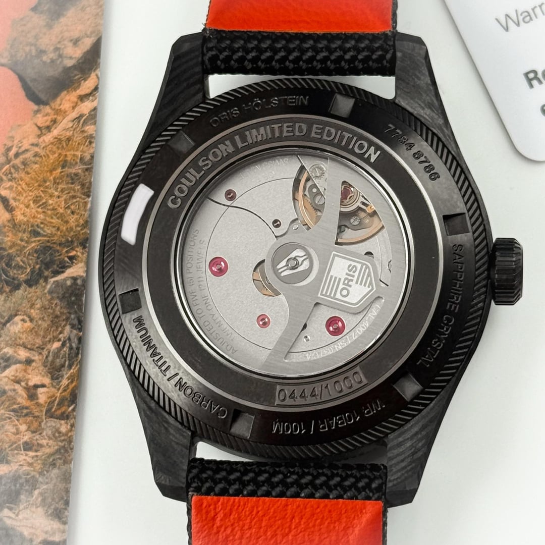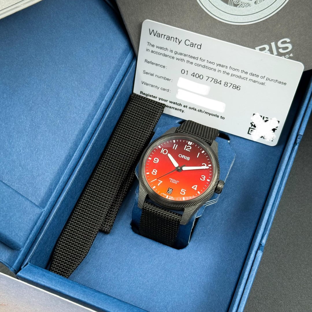 2025 ORIS Big Crown ProPilot "Coulson" Limited Edition 01 400 7784 8786-Set 41mm Complete Set w/ Brand New Extra Strap Celebrating a very honorable collaboration between Oris and “Coulson Aviation” the world’s global leader in aerial firefighting. Part of the ProPilot collection, this watch features a 41mm 3D printed carbon fibre case, titanium clasp, and fiery red dial. Powered by Oris's in-house calibre 400 movement with a 10Day power reserve and 10Year service interval. Limited to only 1,000 pieces, this watch is number #444/1000 and is no longer available to order from Oris. The 10-year factory warranty was activated 10/22/2025 and remains active until 2035. The watch is in excellent "Like New" condition with no visible signs of wear. Running and functioning exactly as it should within factory specs. Also included with this set is an extra brand new unworn factory strap. LIMITED TO 1,000 UNITS: #444/1000 MSRP: $5,200 + Tax PRICE: $3,350 + Label This Set Includes the following: New style box, limited edition booklet, manual, activated warranty card, and extra factory black fabric/leather strap All of my watches are carefully Inspected, Authenticated, and Photographed before listing. Please see photos for the best representation of the watch, its condition, and what it comes with! Please feel free to reach out with any additional questions if necessary. Brand: ORIS Model: ProPilot "Coulson" Reference Number: 01 400 7784 8786-Set Movement: Mechanical Automatic Calibre 400 Case Size: 41mm Case Material: 3D Printed Carbon Fibre Bezel Material: Titanium Year of Production: 2025 Dial: Red/Fire Water Resistance: 100m Crystal: Scratch-Resistant Sapphire Crystal With Original Box: Yes With Original Papers: Yes Band Material: Fabric/Leather Clasp: Titanium Folding Clasp Crown: Screw Down Crown Functions: Hours, Minutes, Date Gender: Men’s Watch/Unisex